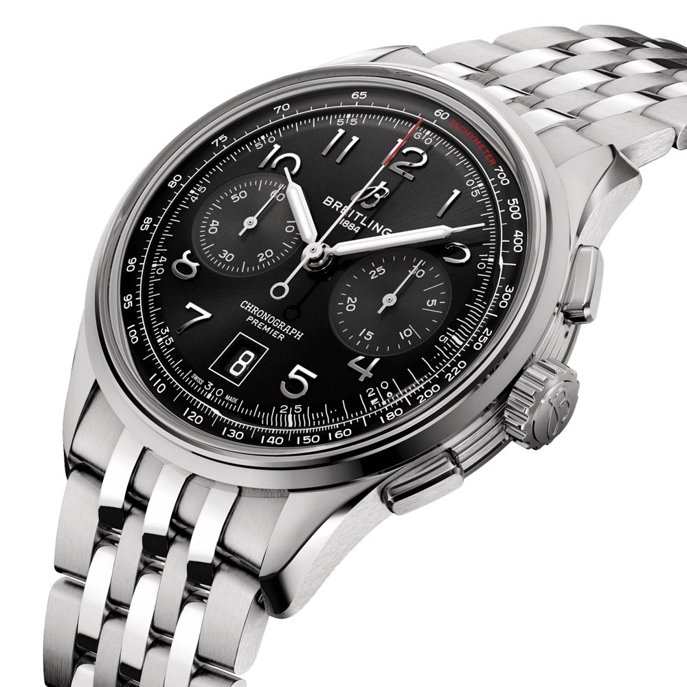 The Premier B01 Chronograph 42 offers a selection of dial colours and case materials. paired with a choice of classic alligator leather or 7-row metal bracelet straps. This sophisticated piece pushes Willy Breitling's technical excellence further. featuring the COSC-certified Breitling Manufacture Caliber 01 movement for optimal precision. dependability and features.