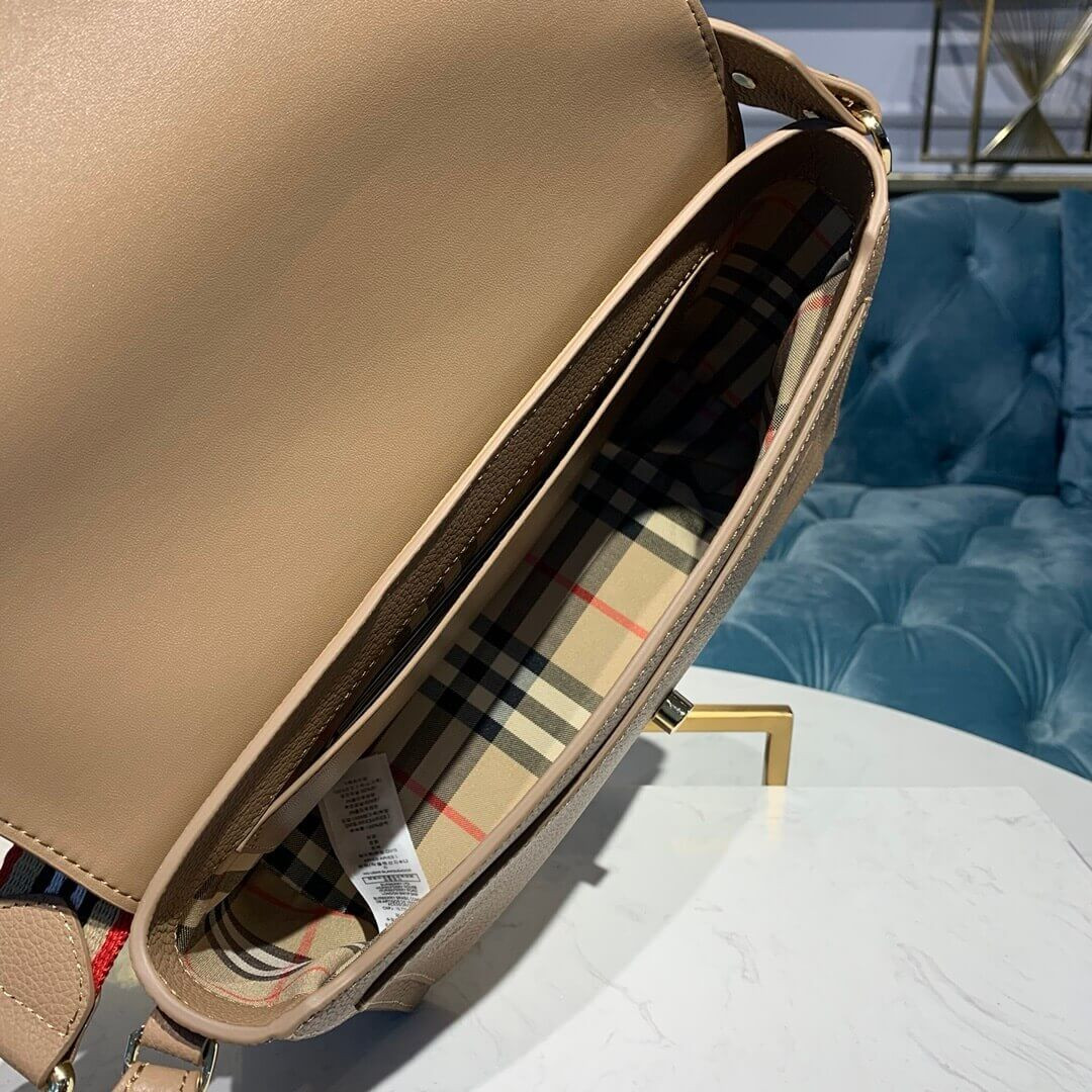 A slim crossbody bag in grainy leather, accented with polished logo-engraved press studs and a detachable webbed strap in our Icon stripe. Wear on the shoulder, across the body or carry as a clutch.