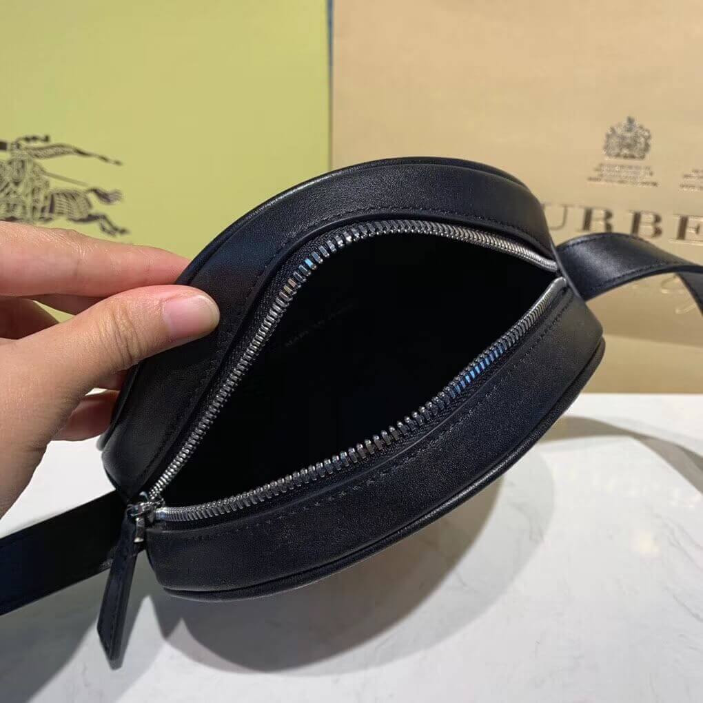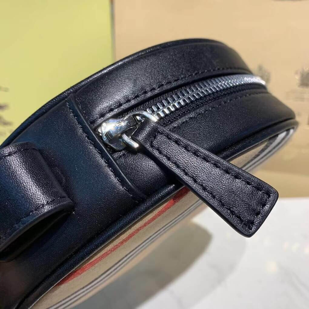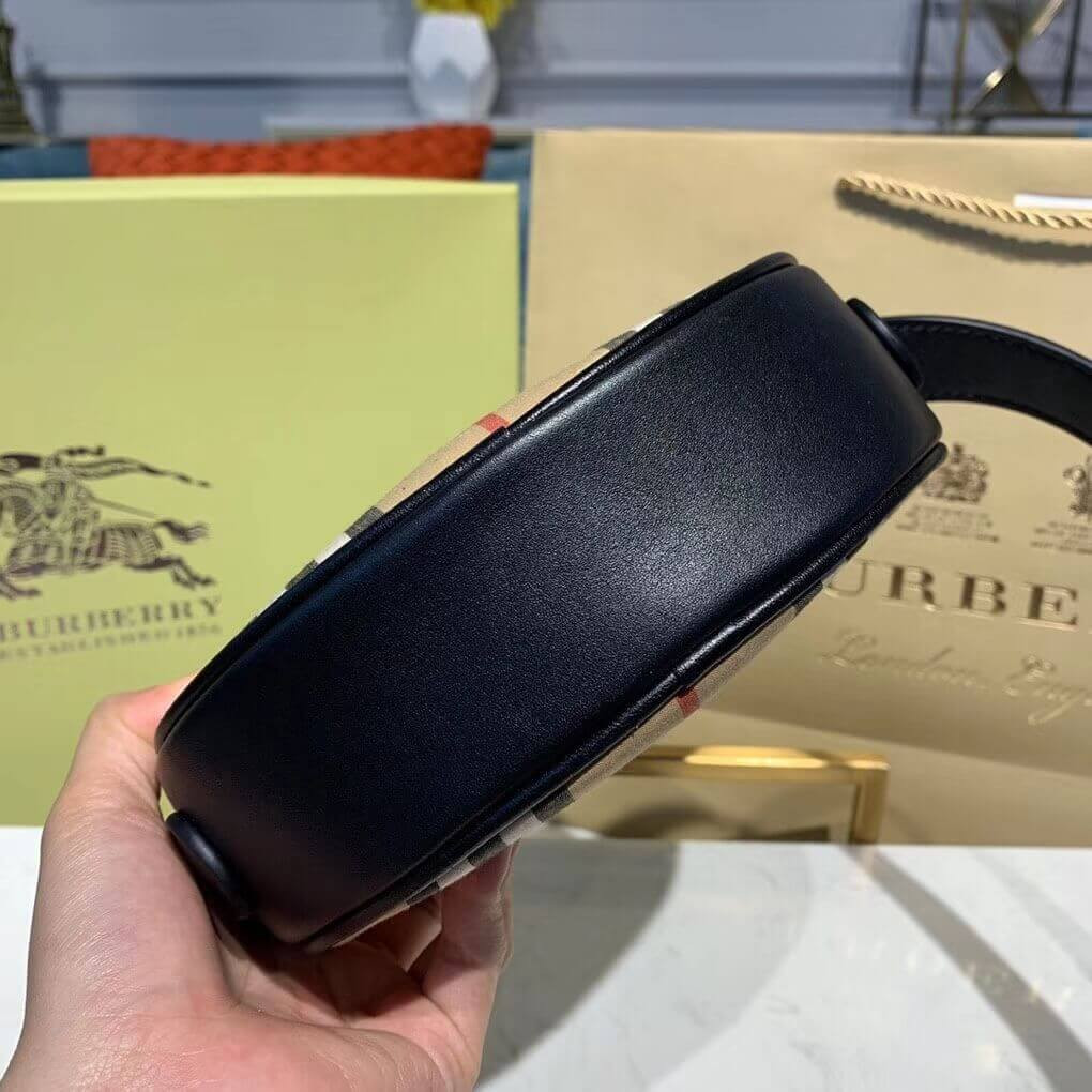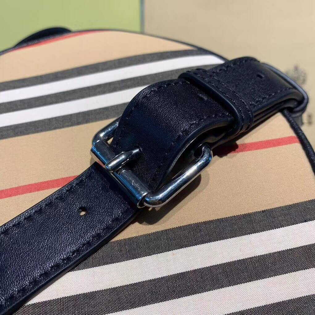 A circular crossbody bag in cotton animated with our Icon stripe and trimmed with leather.
