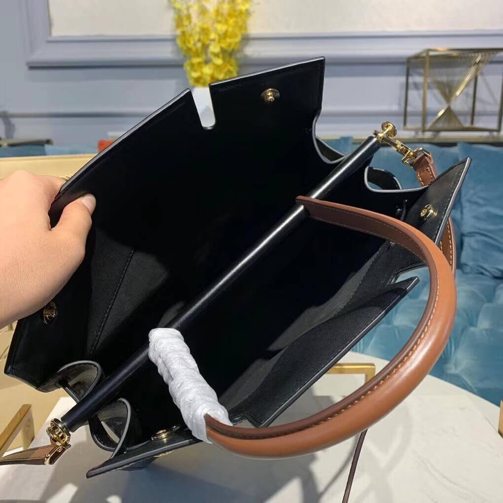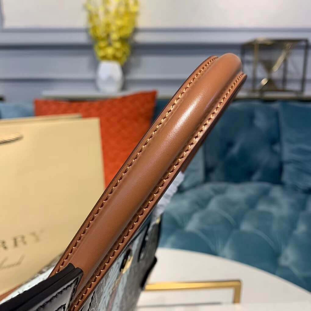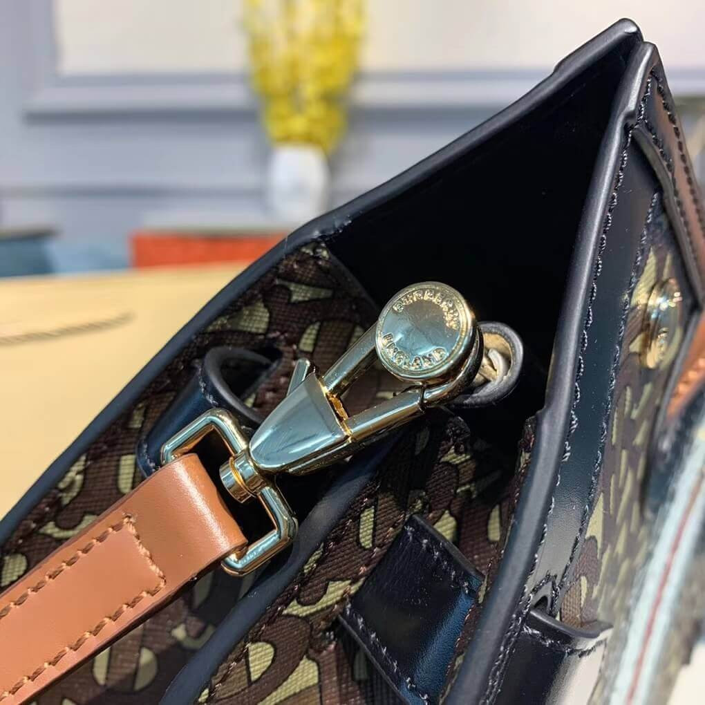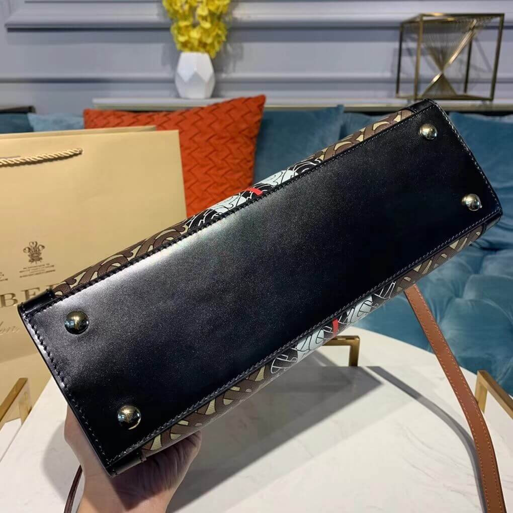 A structured bag in our environmentally conscious e-canvas, primarily made using renewable resources that require less water and generate less CO2 than conventional coated canvases. Printed with a distinctive Monogram stripe, the design is defined with a polished top bar and triple-stud closure. Wear it on the shoulder using the detachable strap.