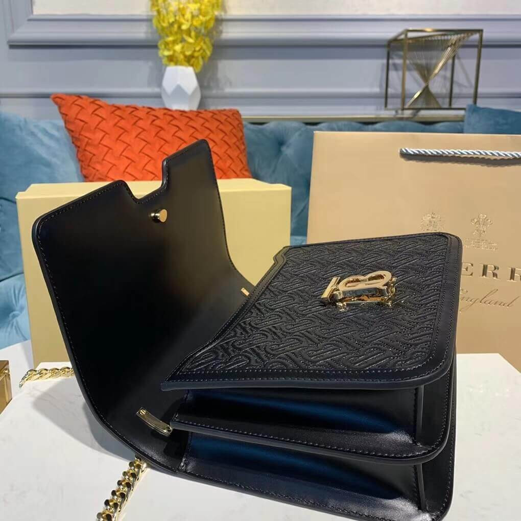 A structured bag in quilted Monogram lambskin with a Thomas Burberry Monogram clasp. Wear it on the shoulder or adjust the strap to style as a crossbody.