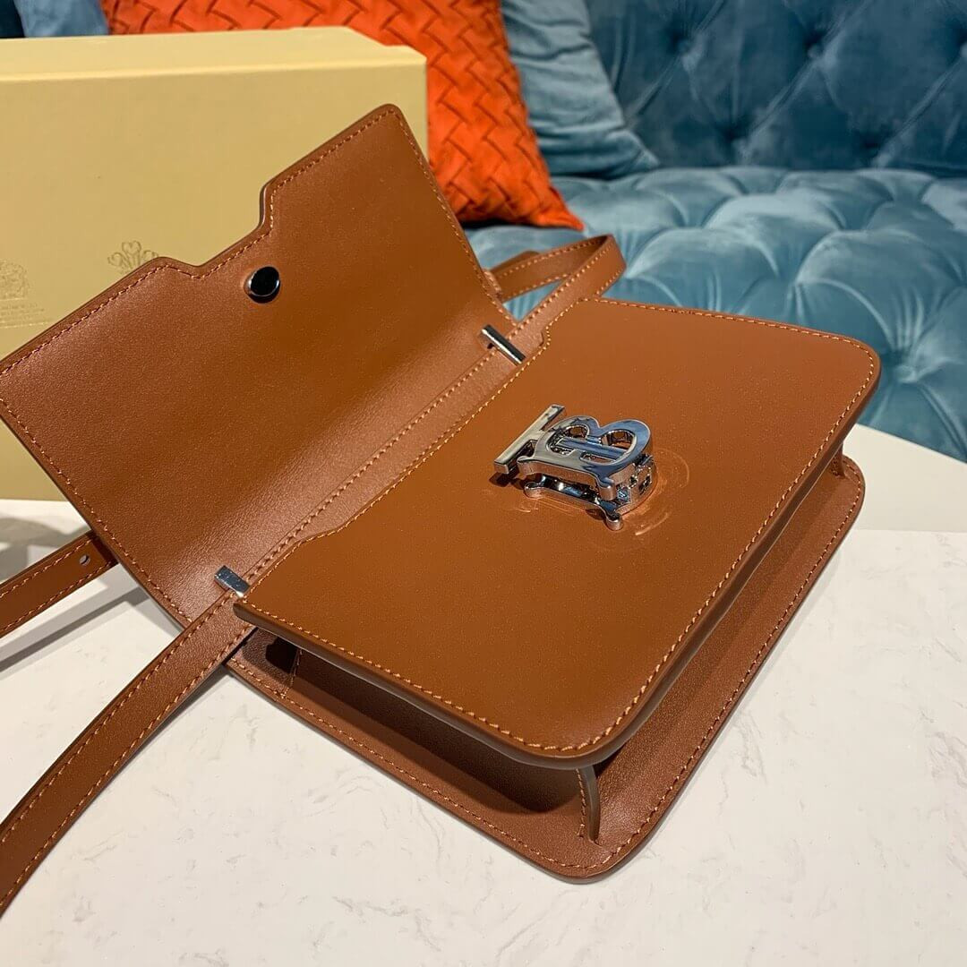 A structured bag in smooth leather with a Thomas Burberry Monogram clasp. Wear on the shoulder, across the body or carry as a clutch.