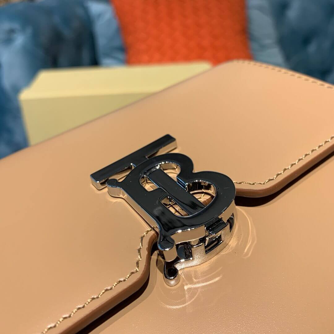 A structured bag in smooth leather with a Thomas Burberry Monogram clasp. Wear on the shoulder, across the body or carry as a clutch.