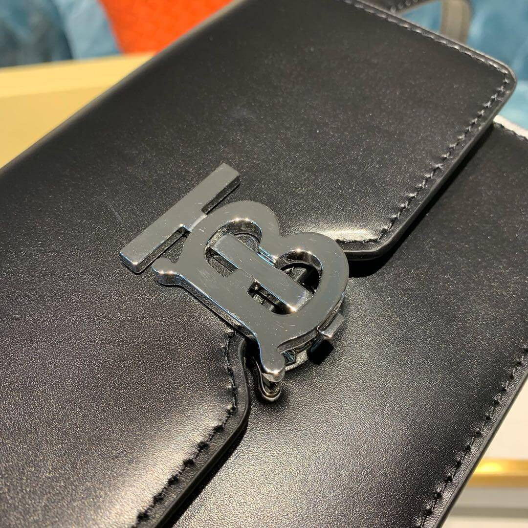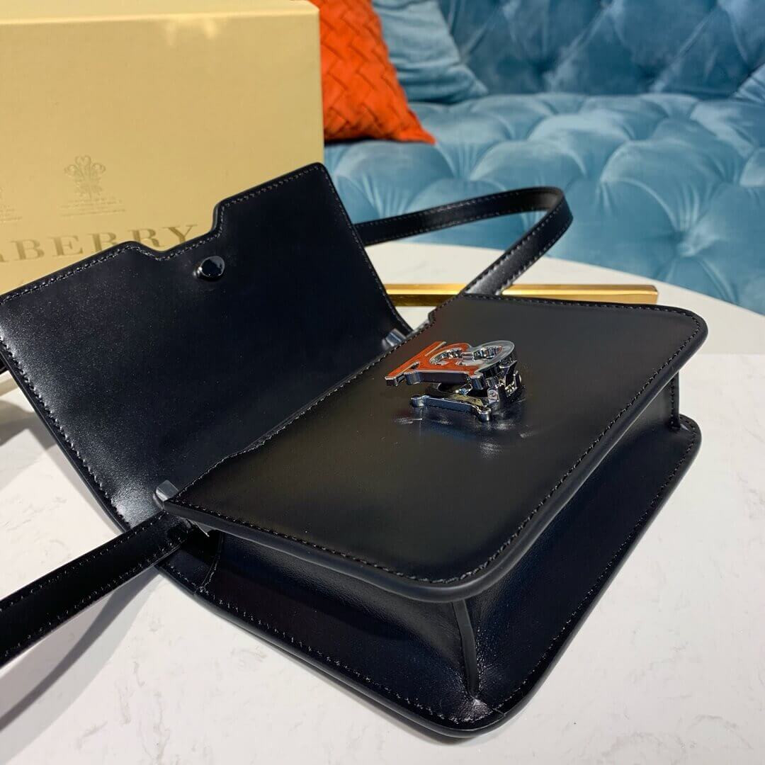 A structured bag in smooth leather with a Thomas Burberry Monogram clasp. Wear on the shoulder, across the body or carry as a clutch.