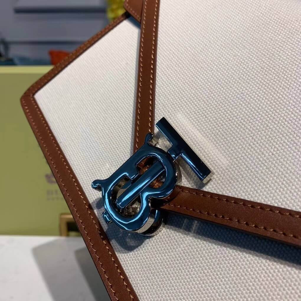 A canvas and leather envelope clutch with a Thomas Burberry Monogram clasp, reworking a 1930s style from the archive.