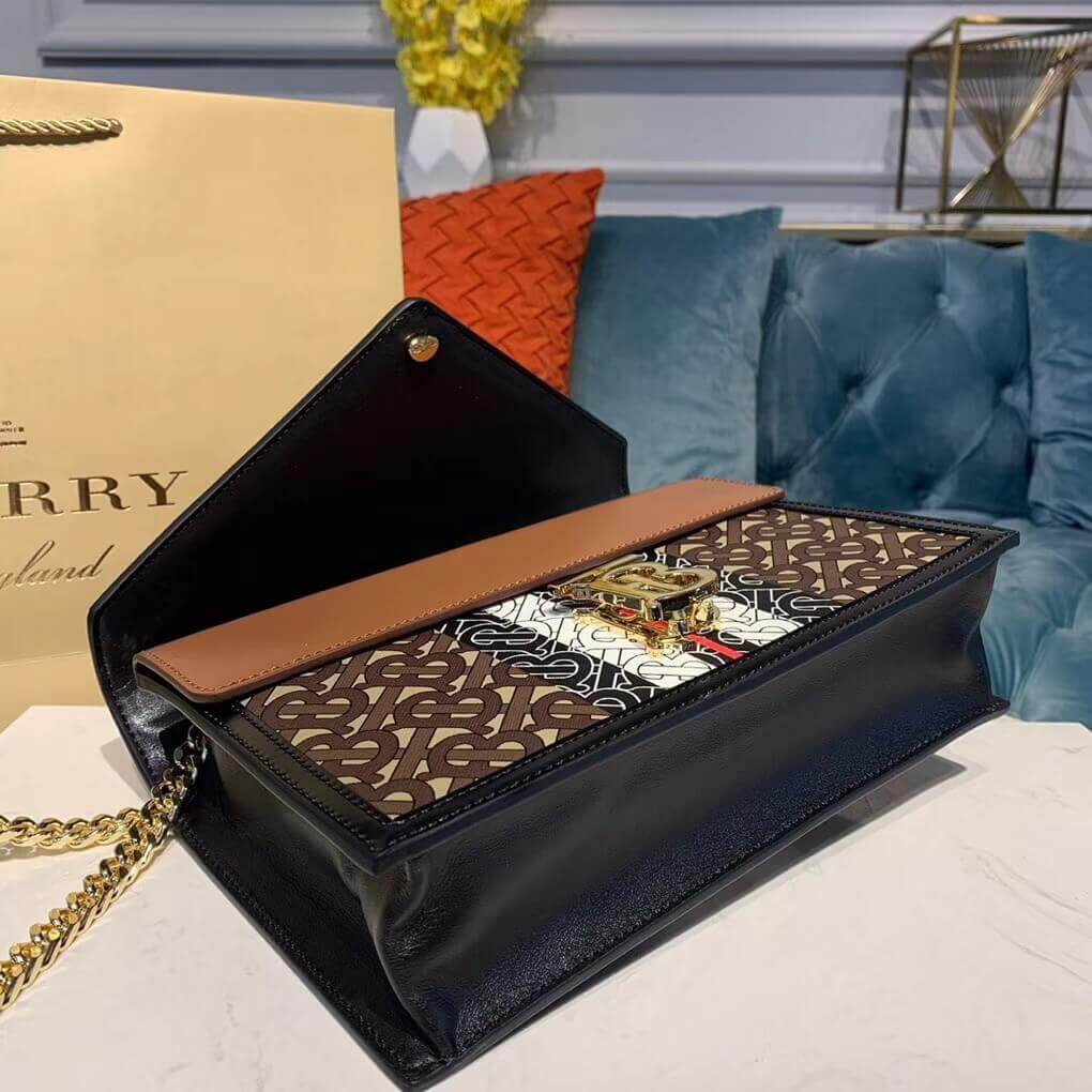 An envelope clutch in our new e-canvas – an environmentally conscious canvas, primarily made using renewable resources that require less water and generate less CO2 than conventional coated canvases – with a Thomas Burberry Monogram clasp, reworking a 1930s style from the archive. Use the detachable chain shoulder strap to keep hands free.