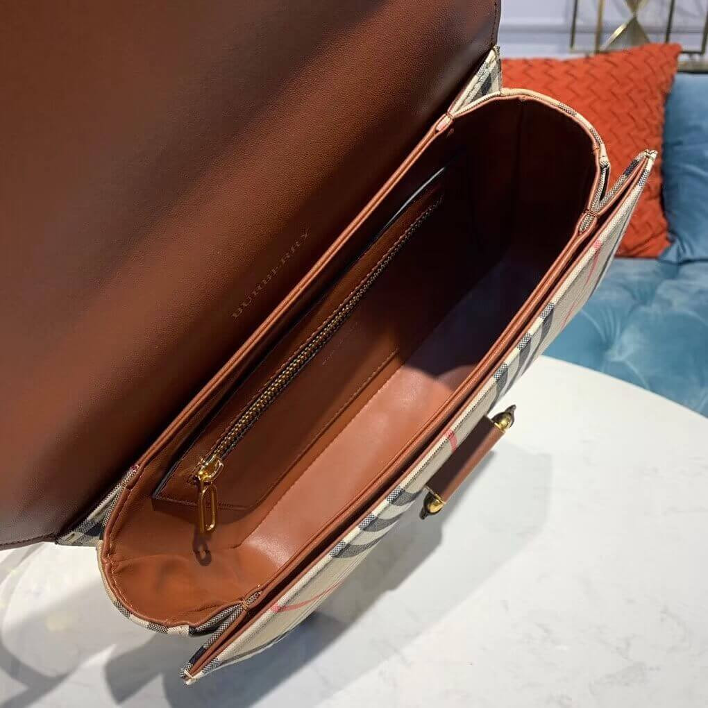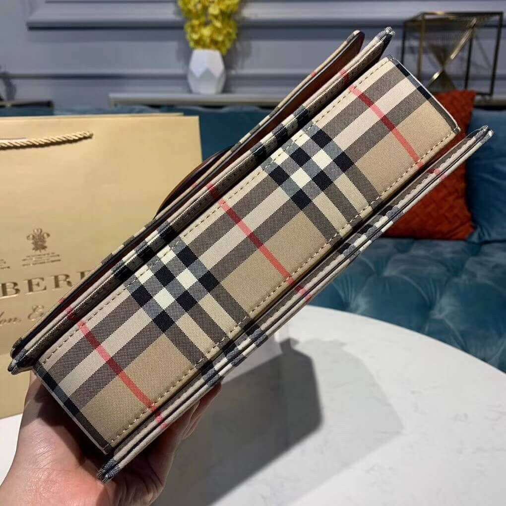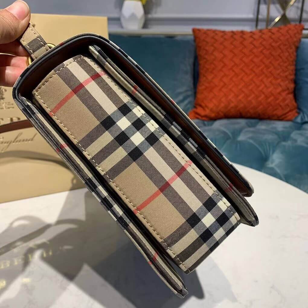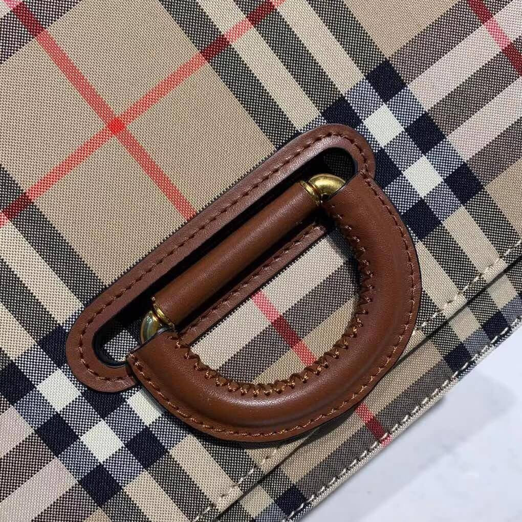A sleek box-style bag in Vintage check with a distinctive leather-wrapped D-ring fastening inspired by our signature trench. Wear it on the shoulder or adjust the strap to style as a crossbody.