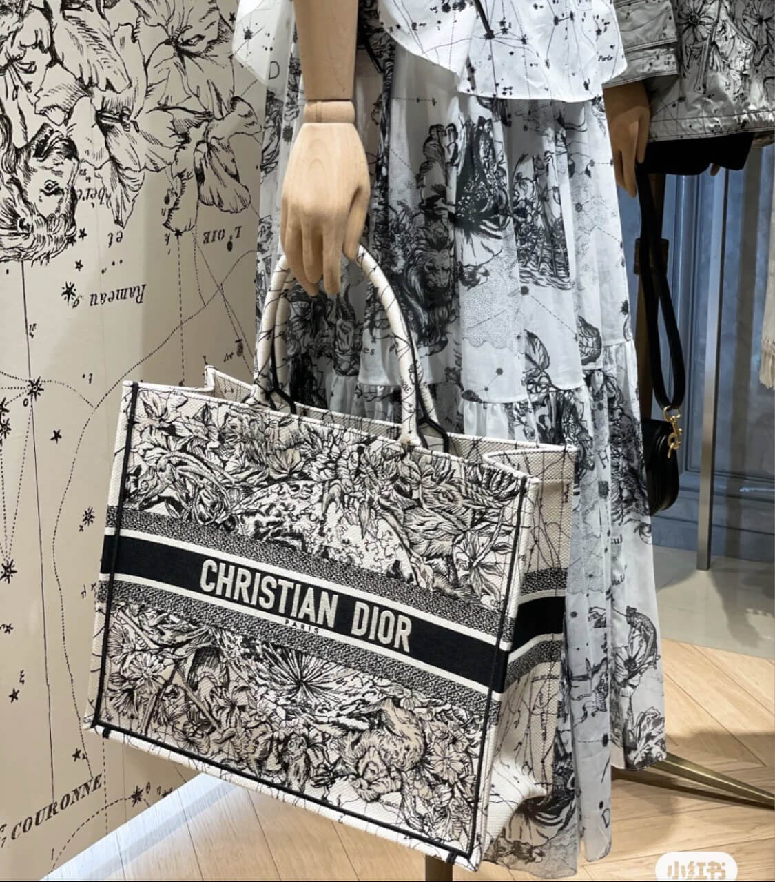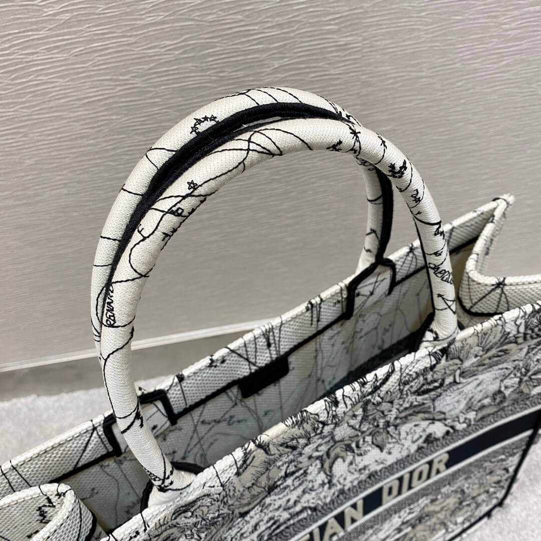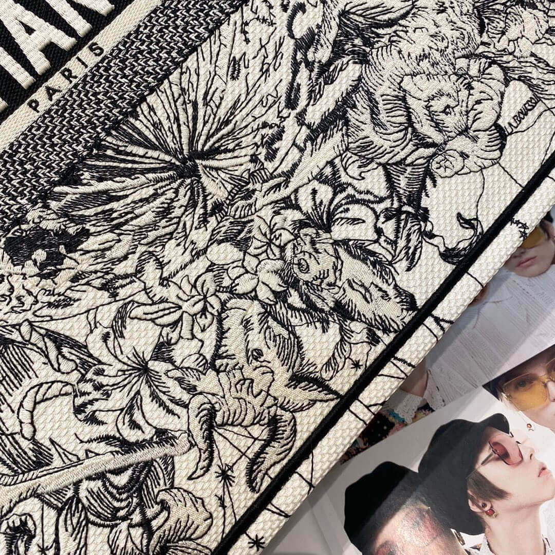 The Dior Book Tote, an original style introduced by Creative Director Maria Grazia Chiuri, has become a staple of the Dior aesthetic. This latte silhouette is fully embroidered with the Dior Zodiac motif, channeling Mr. Dior's fascination for astrology. Adorned with the 'Christian Dior' signature, the Dior Book Tote exemplifies the House's signature savoir-faire.