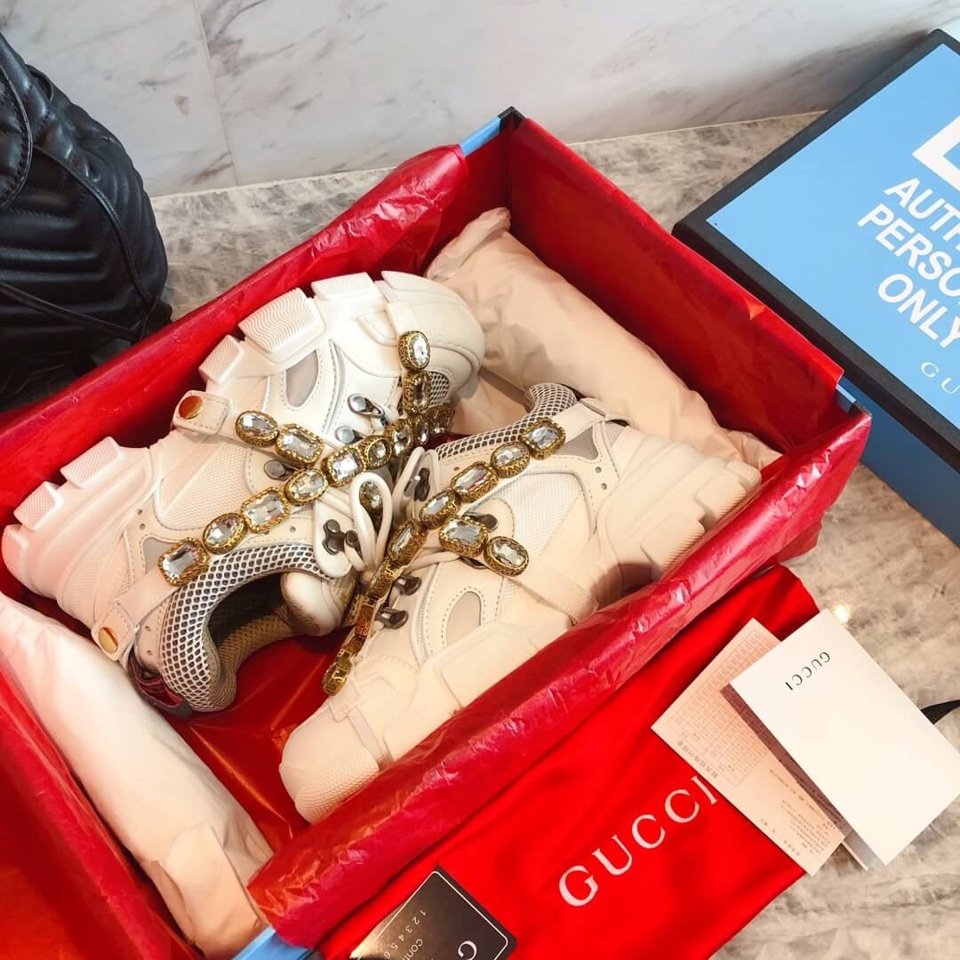 Gucci Flashtrek Sneaker With Removable Crystals 541445 White