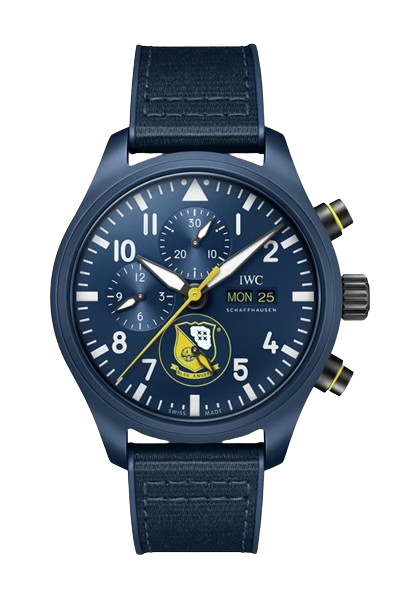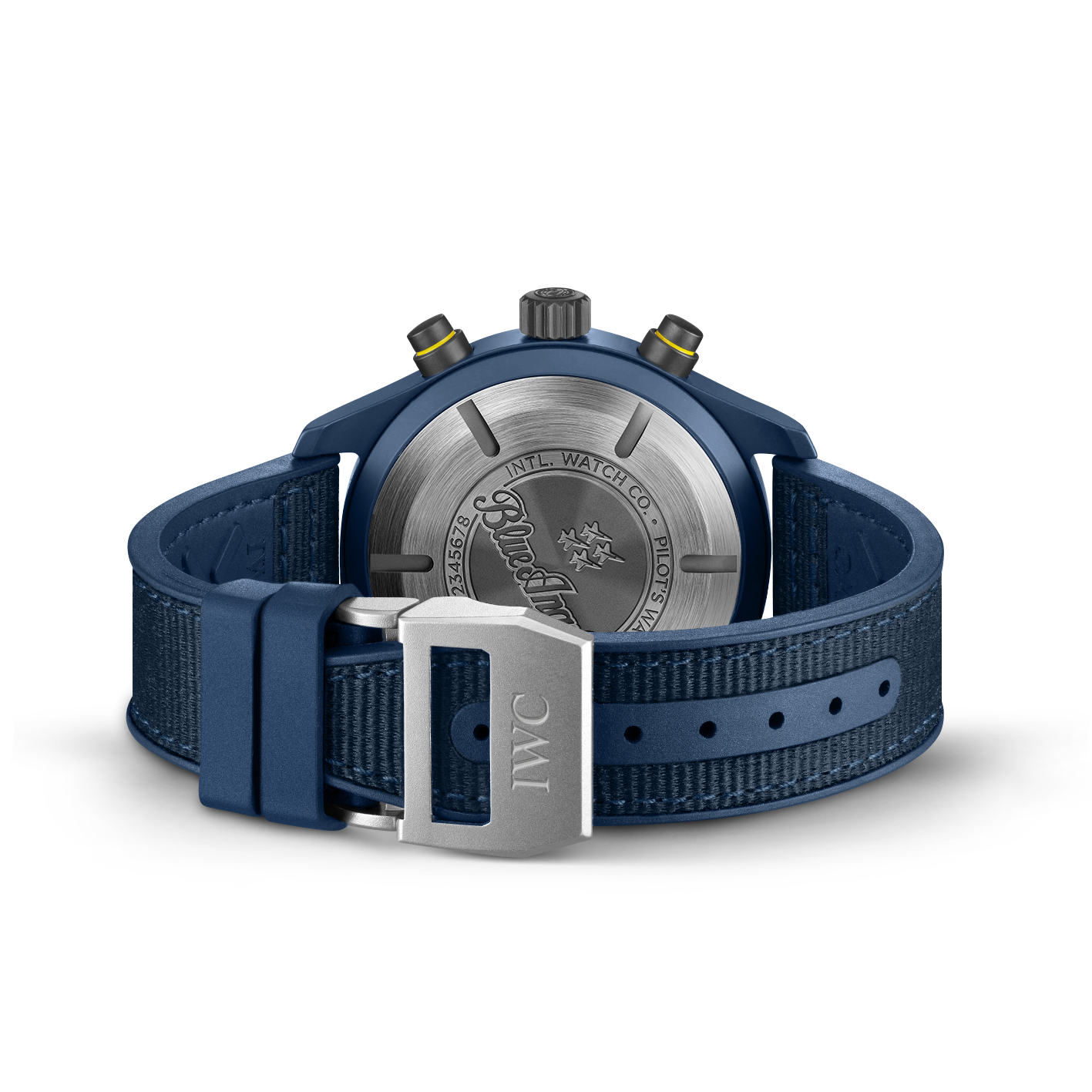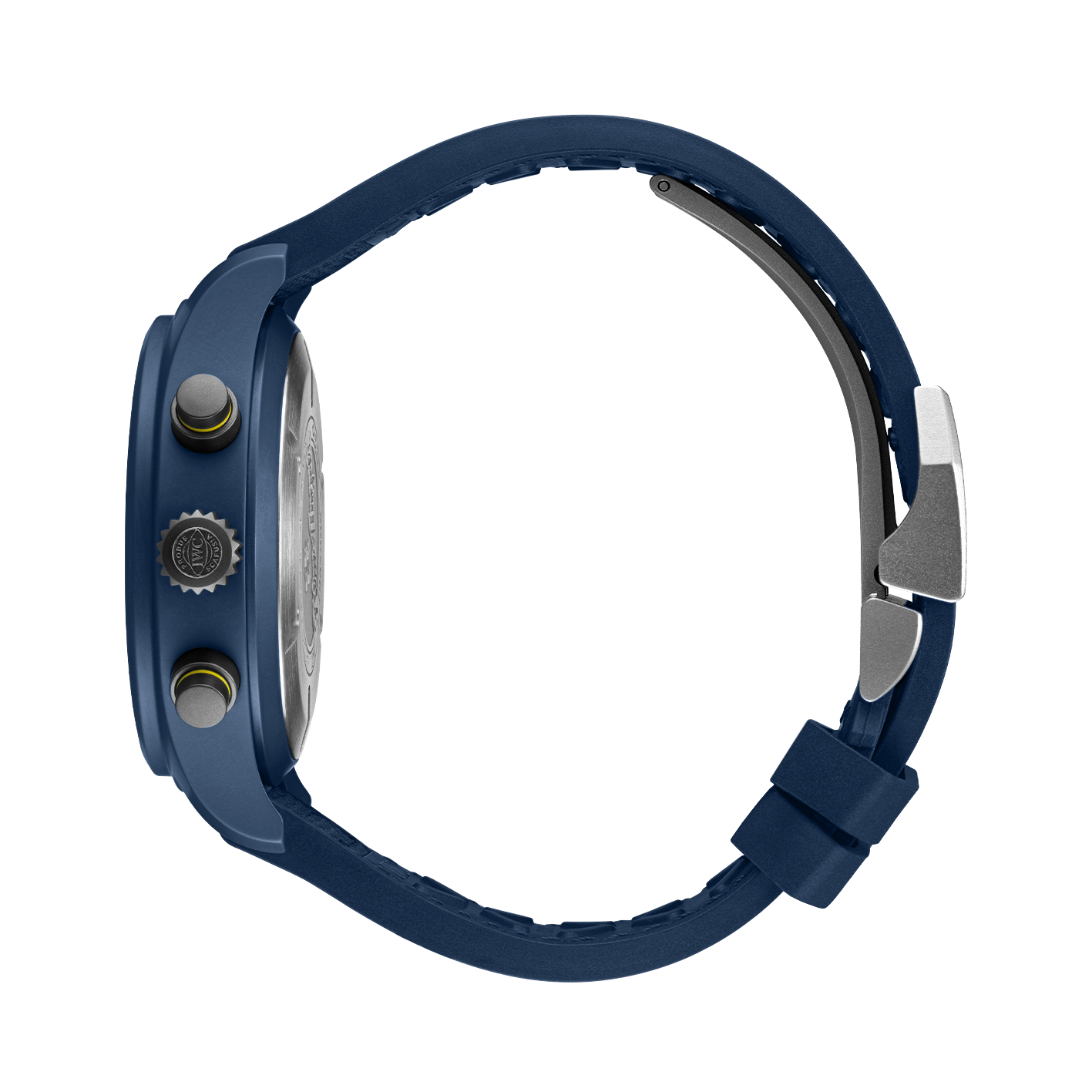 Ceramic case. Self-winding. Diameter 44.5 mm. Blue rubber strap with fabric insert. Strap width 21.0 mm.