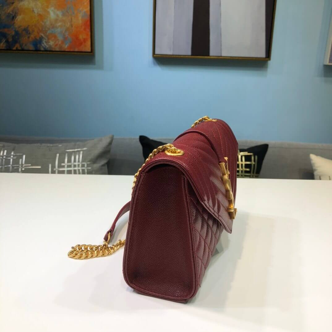 Saint laurent monogram bag with a front flap and snap button fastening, featuring an attached lanyard, interlaced ysl initials and mixed matelasse quilted overstitching.