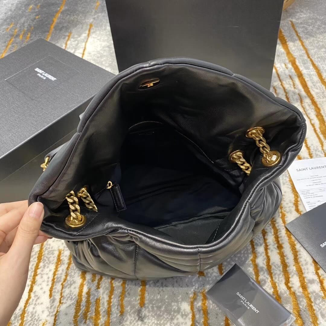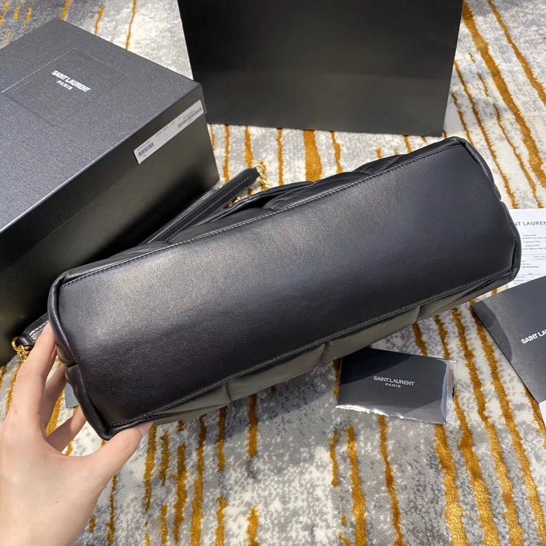 Saint Laurent monogram bag, decorated with metal YSL initials and featuring a leather and chain strap that can be worn doubled as a shoulder strap.