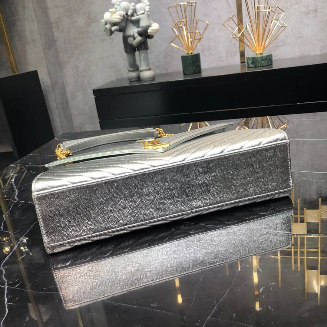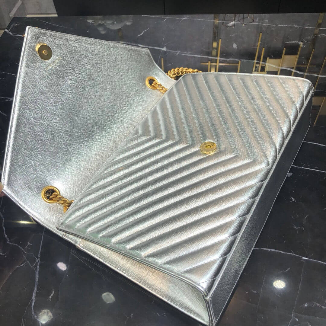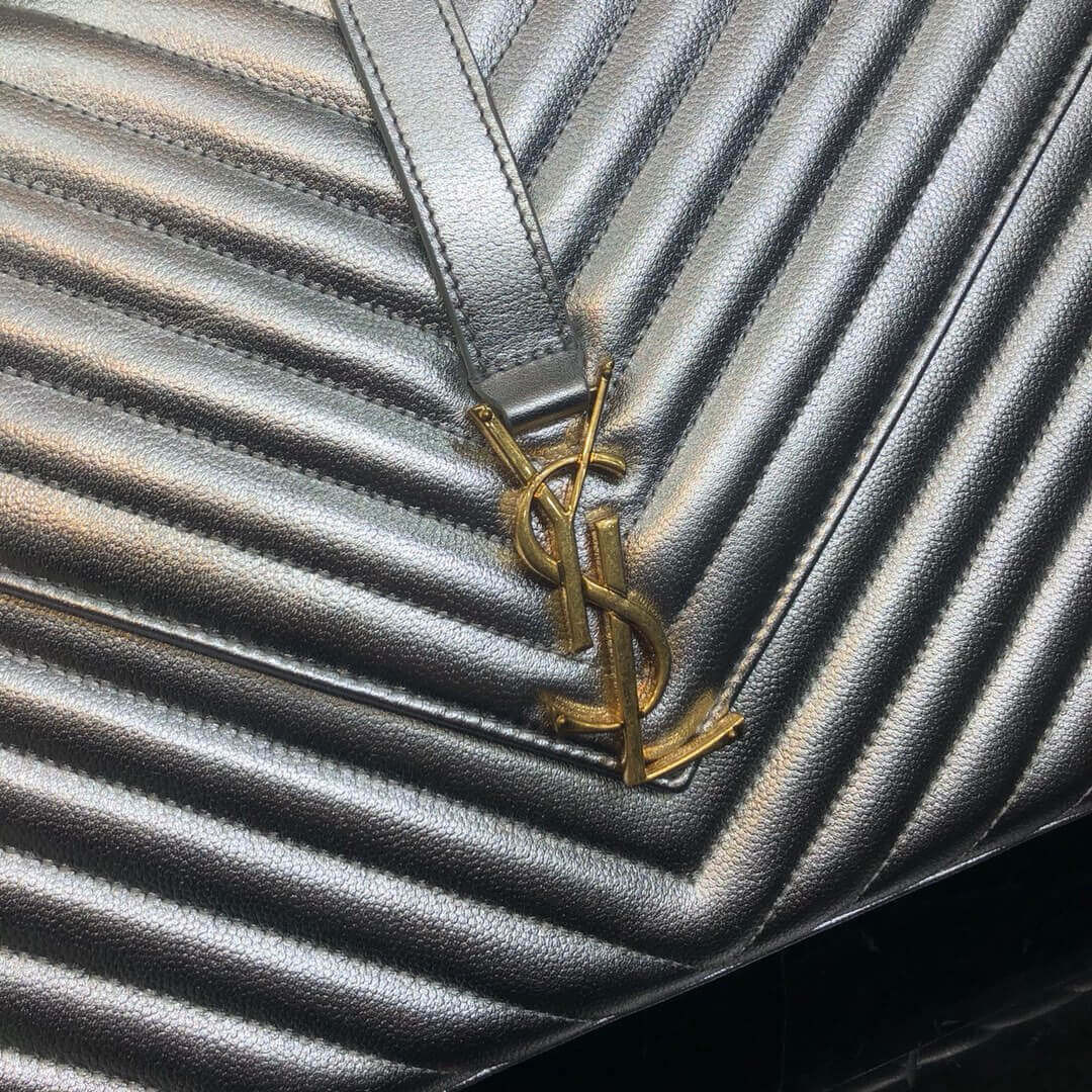 Classic monogram saint laurent double gourmette chain flap front bag with gold-toned metal ysl signature and matelassé stitching.