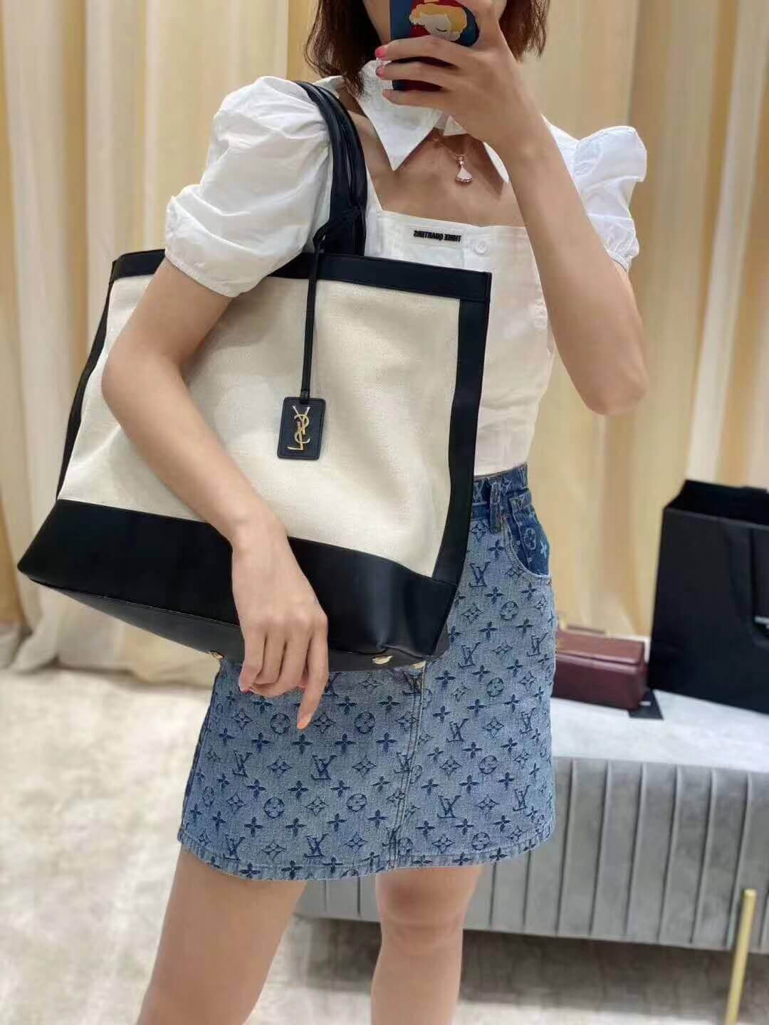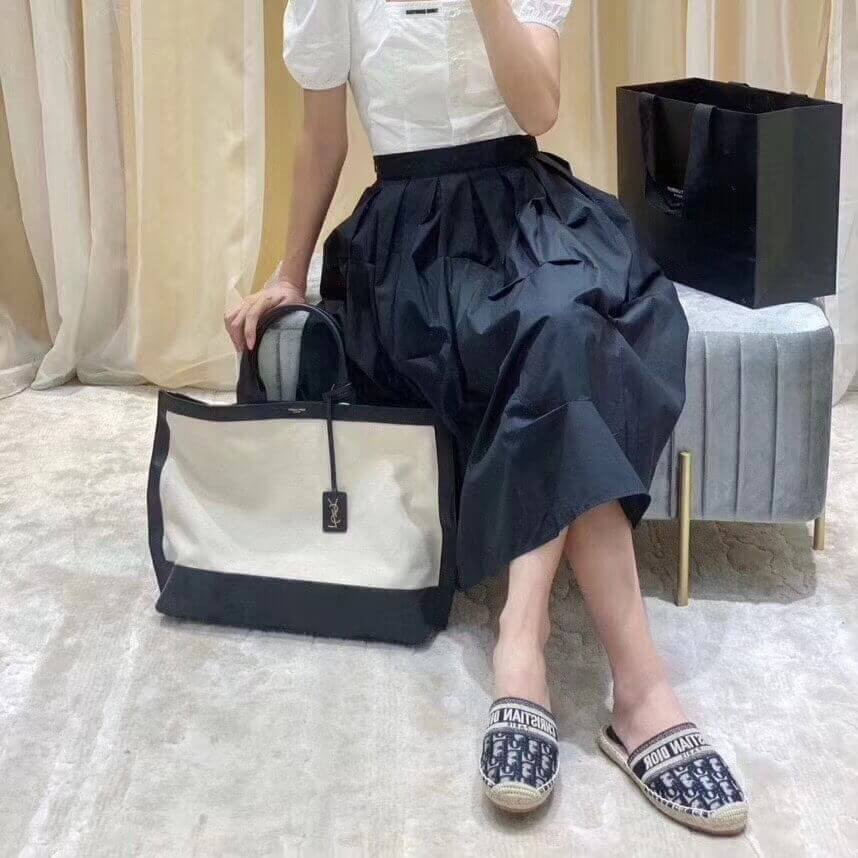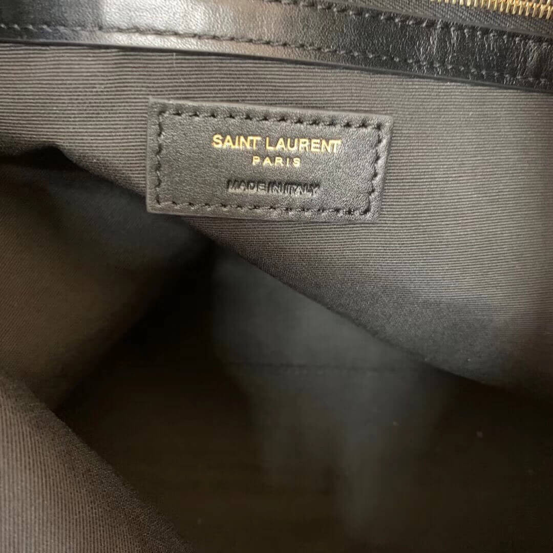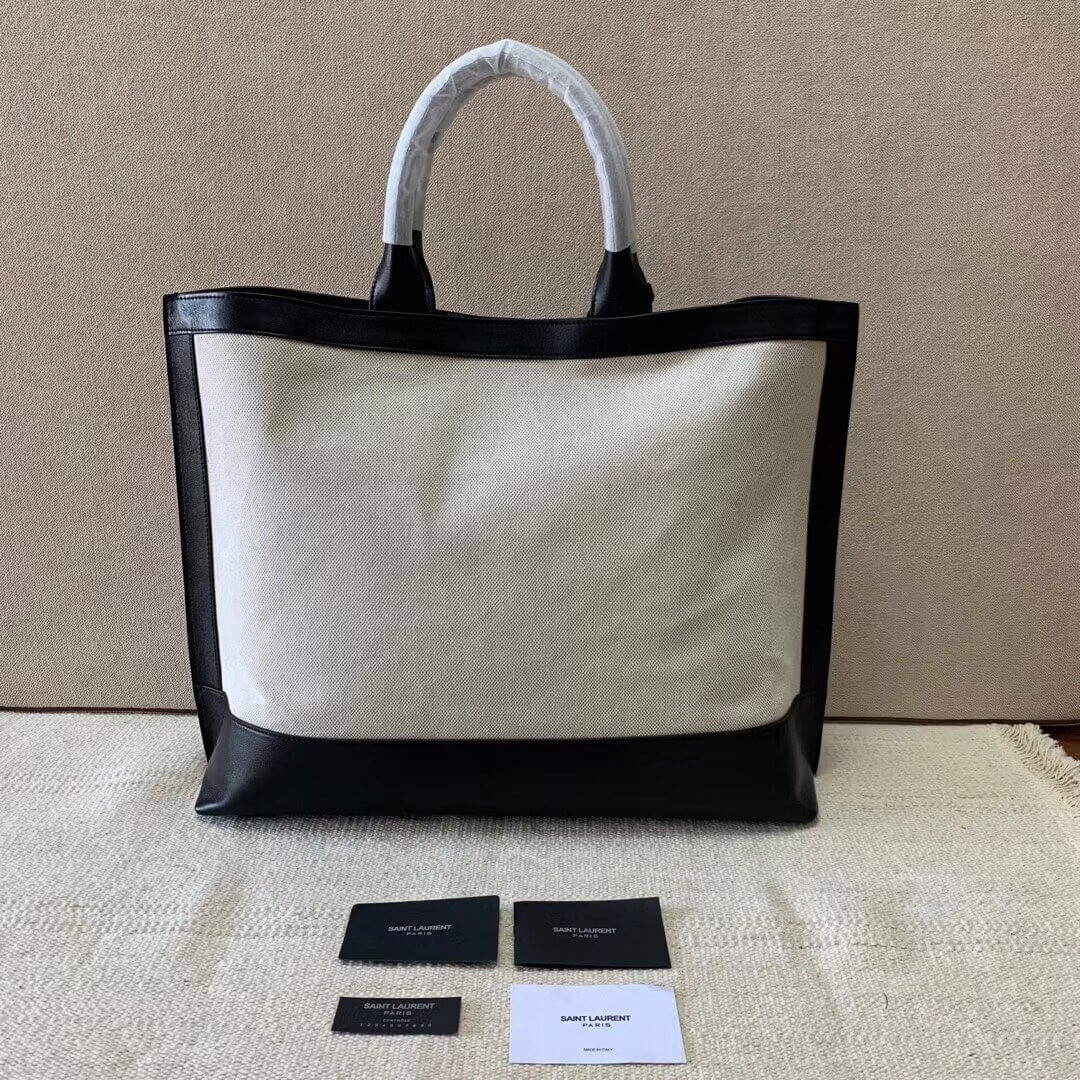 Sac cabas muni de poignées en cuir et d’une étiquette en cuir amovible ornée des initiales ysl en métal.