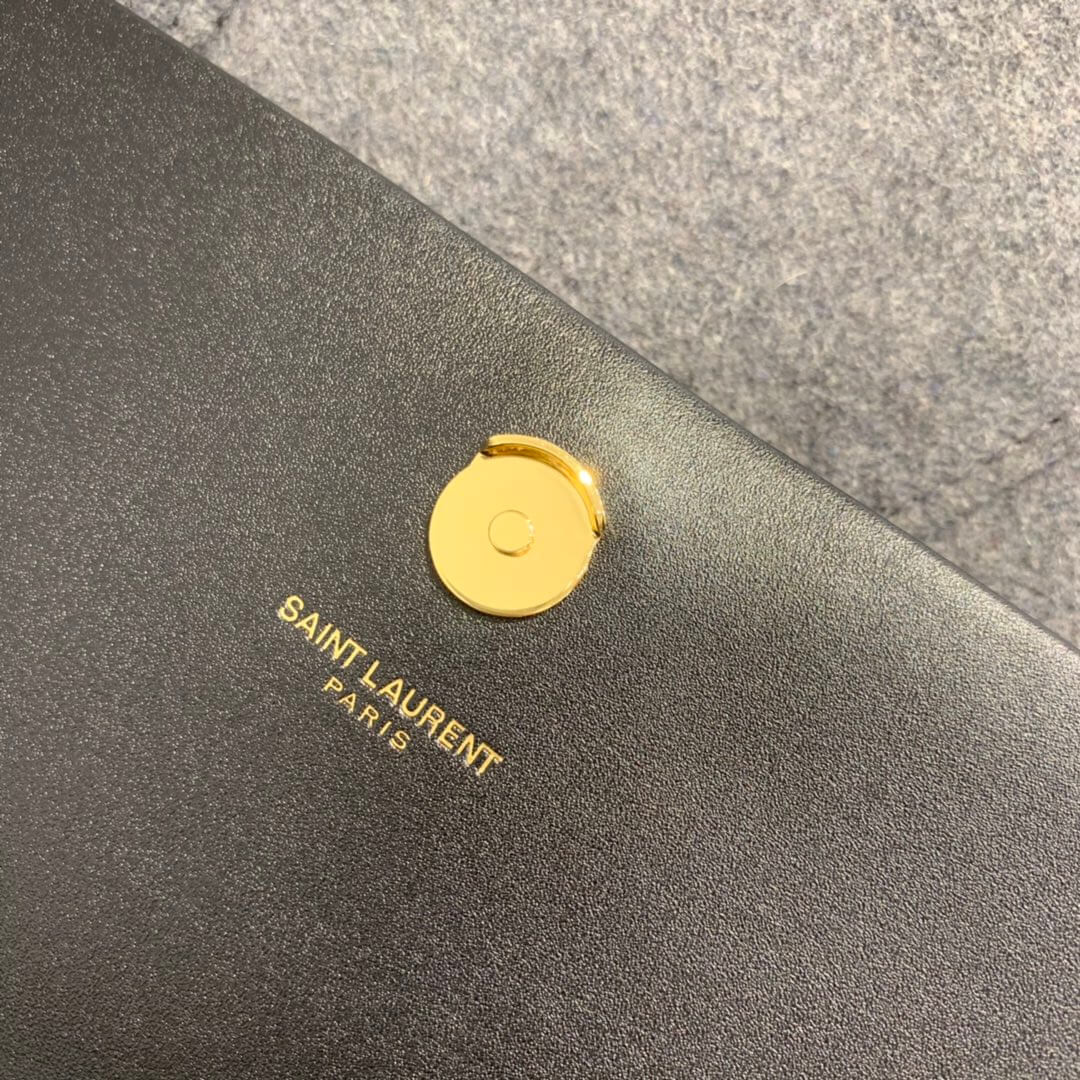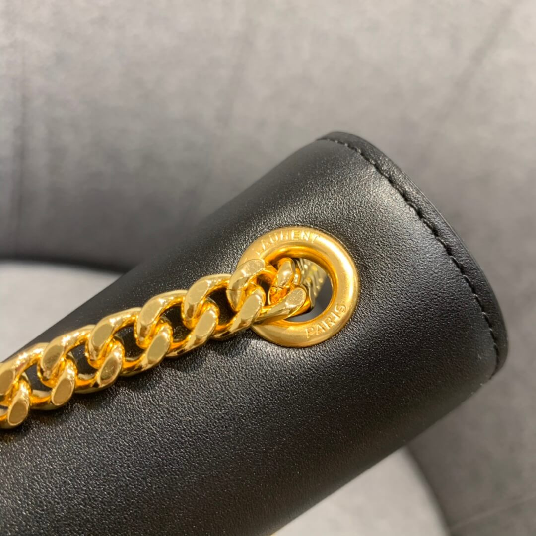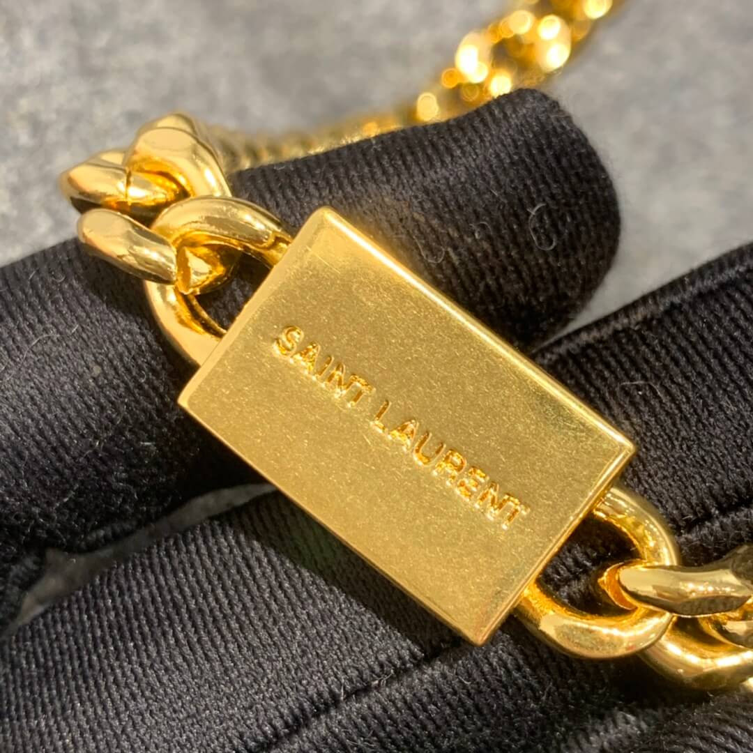 Classic monogram saint laurent gourmette chain shoulder bag with interlocking metal ysl signature and metal chain tassel.