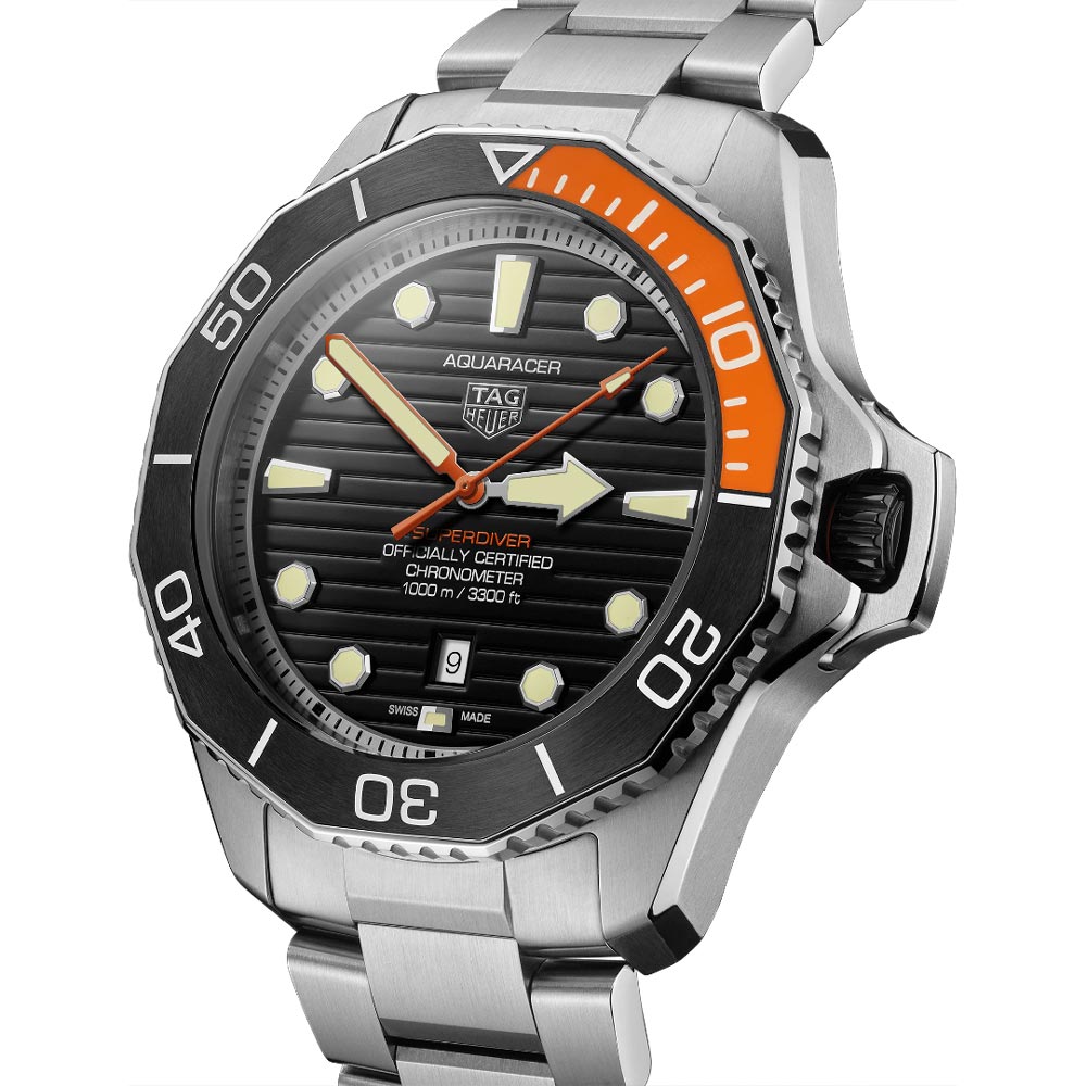 The TAG Heuer Aquaracer is crafted to survive any environment. such as this 45mm Superdiver. Its 1000M waterproof rating is unparalleled and this titanium watch. which is compliant with ISO 6425:2018. is designed for deep sea exploration and dependable performance.