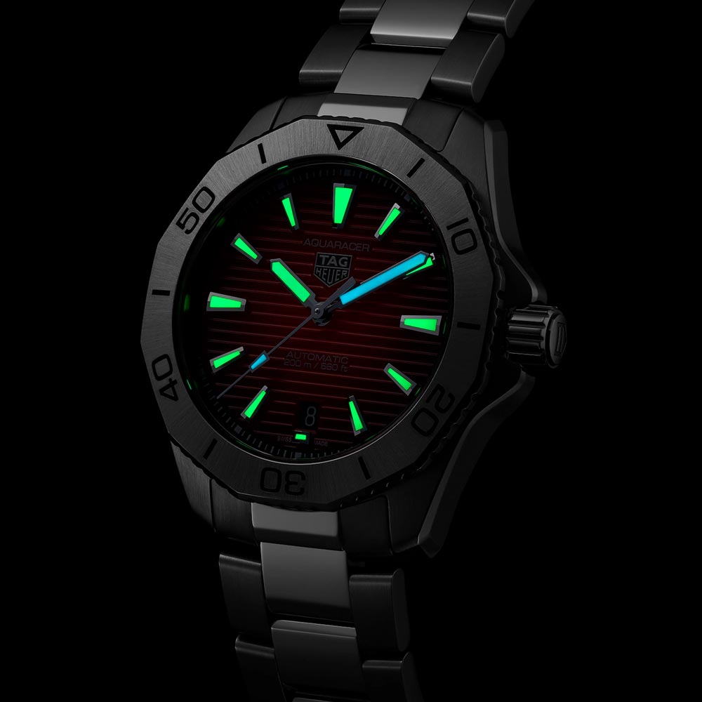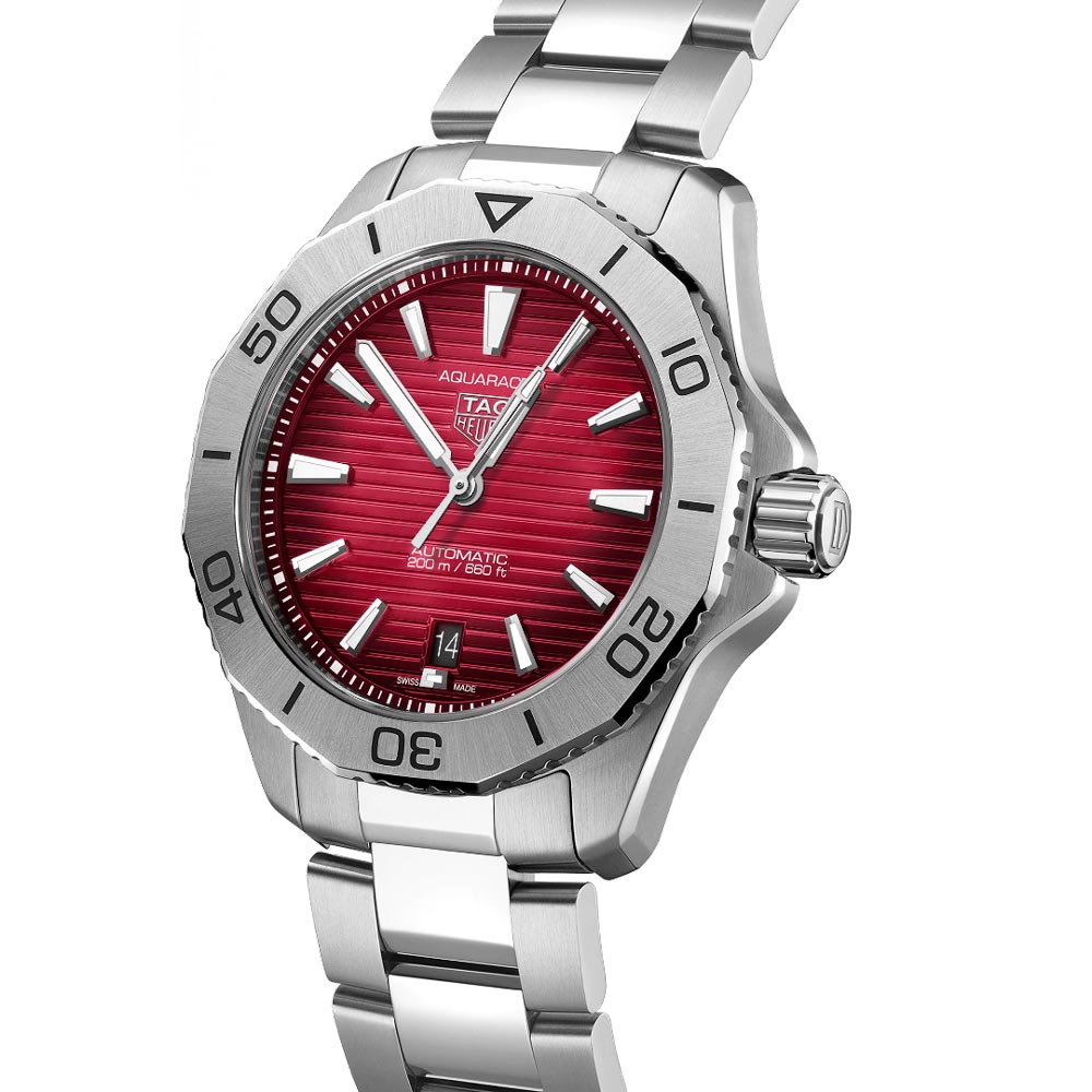 Equipped with a striking ruby-red dial that captures the vibrant colours of fall. this TAG Heuer Aquaracer boasts a 40mm steel case and bracelet for a look that is sophisticated and versatile. Perfect for those seeking an adventurous lifestyle. it is designed to go the extra mile in style.