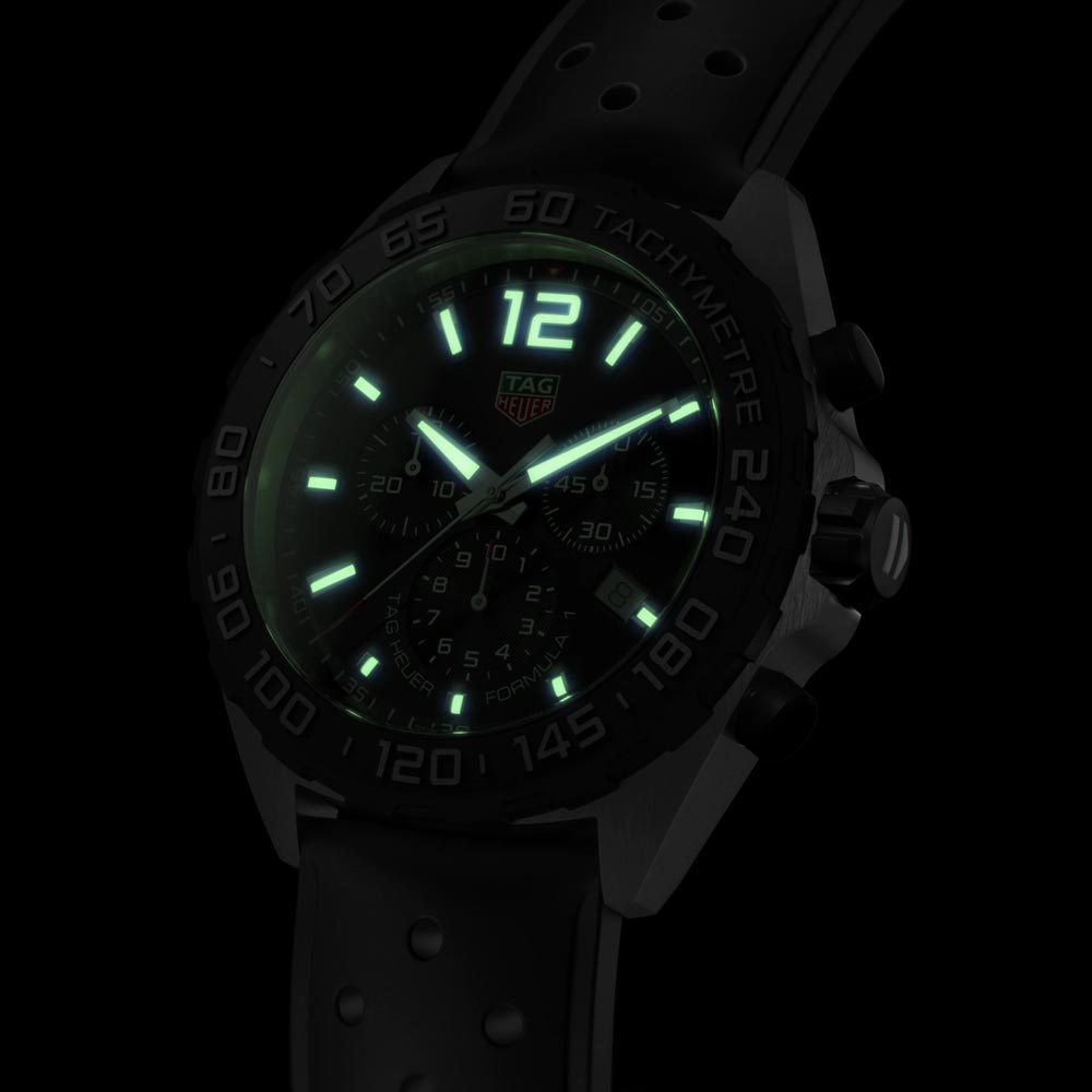 - Black titanium carbide coated steel “Easy Grip�?screw-in crown with raised fine-brushed TAG Heuer shield