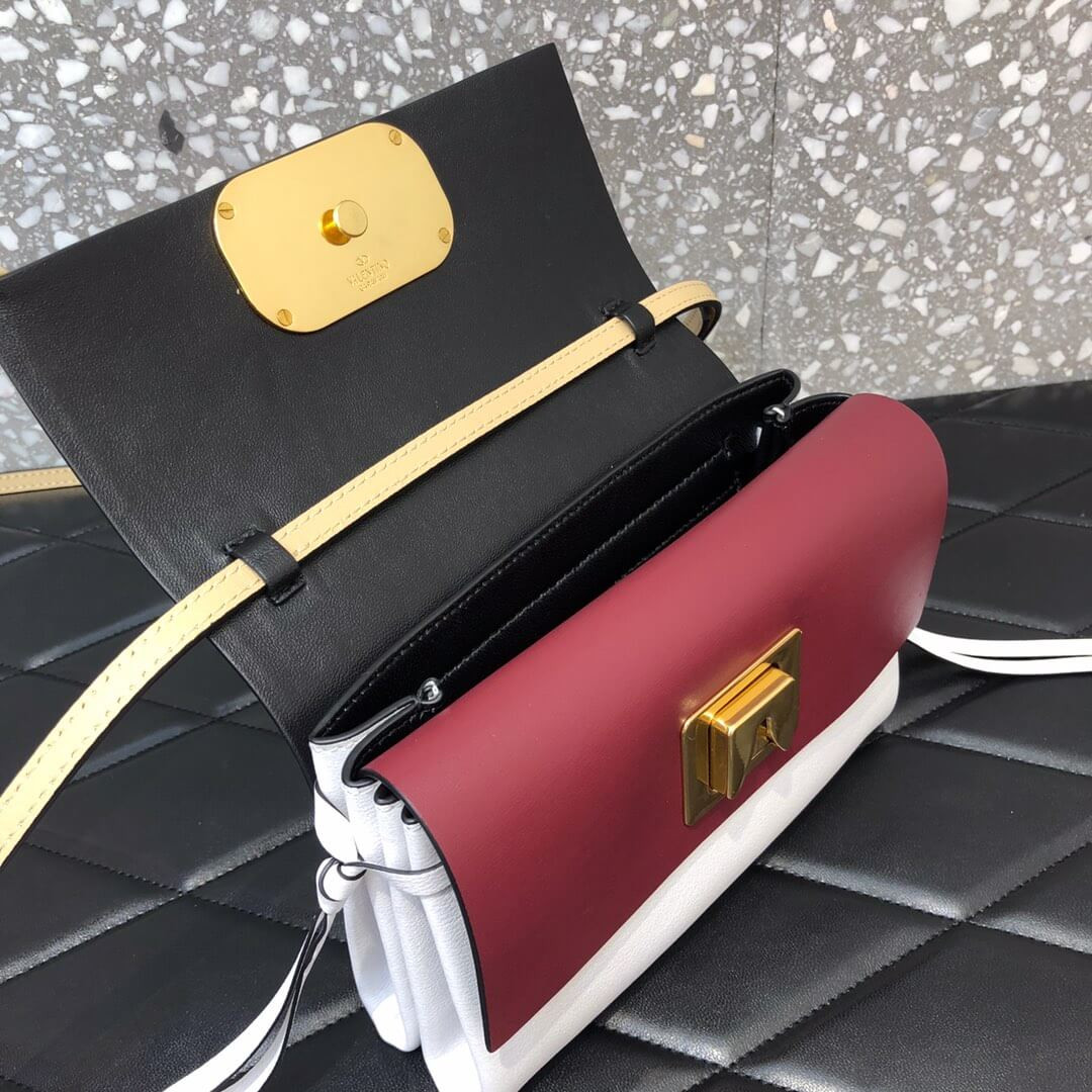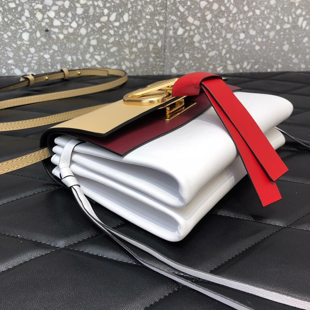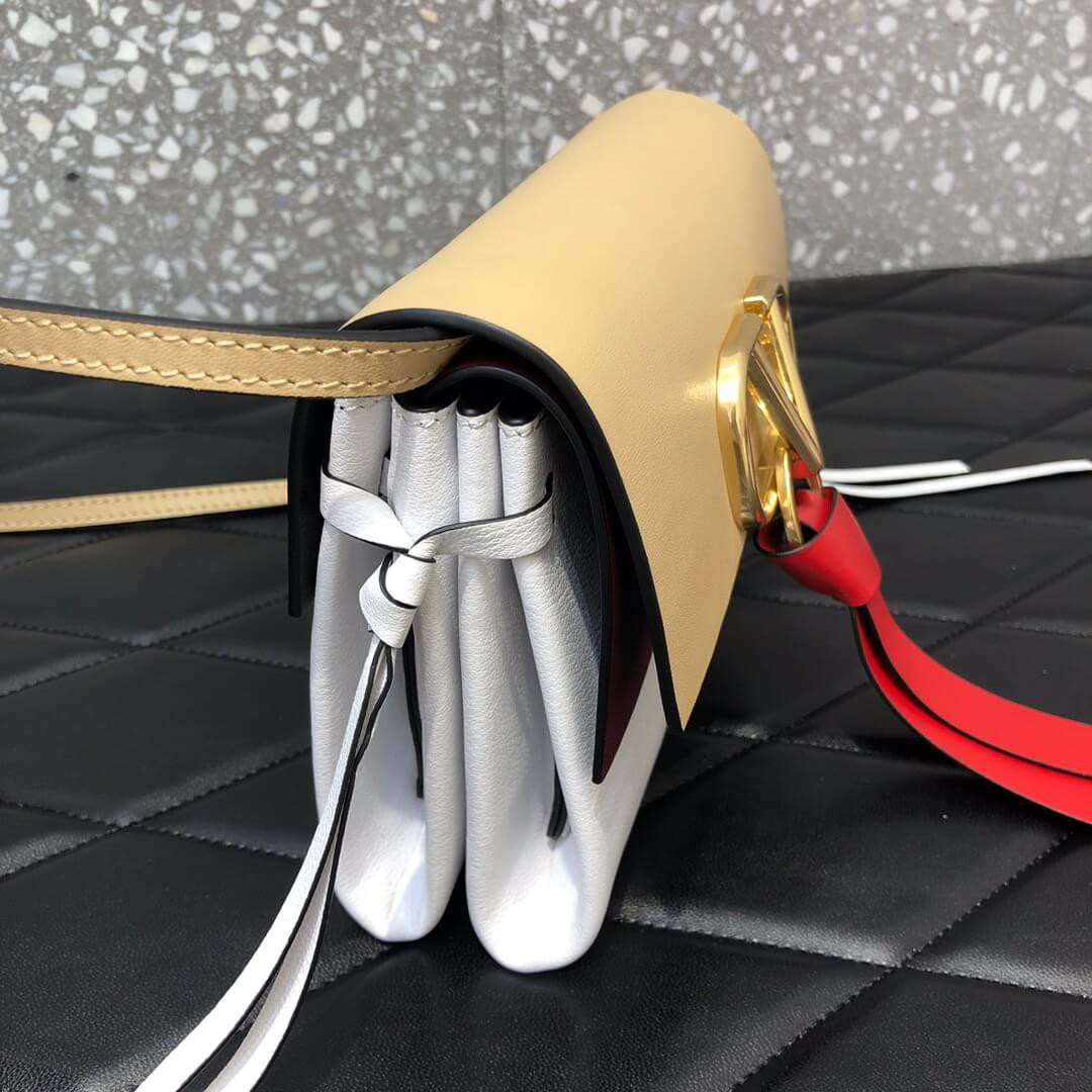 Small Valentino Garavani VRING shoulder bag in smooth calfskin and colored buffalo leather. This bag features a metal logo, adorned with a ring and tie.