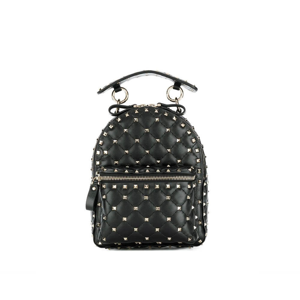Valentino Garavani Rockstud Spike.It mini backpack in supple lambskin leather with VLTN print. Quilted construction embellished with small studs. The adjustable and removable shoulder straps mean the backpack can be worn on the shoulder or across the body.