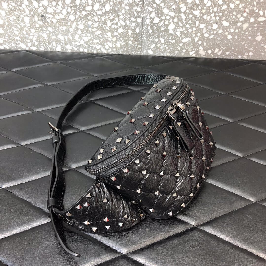 Valentino Garavani Rockstud Spike belt bag in supple nappa lambskin. Quilted construction embellished with small studs.