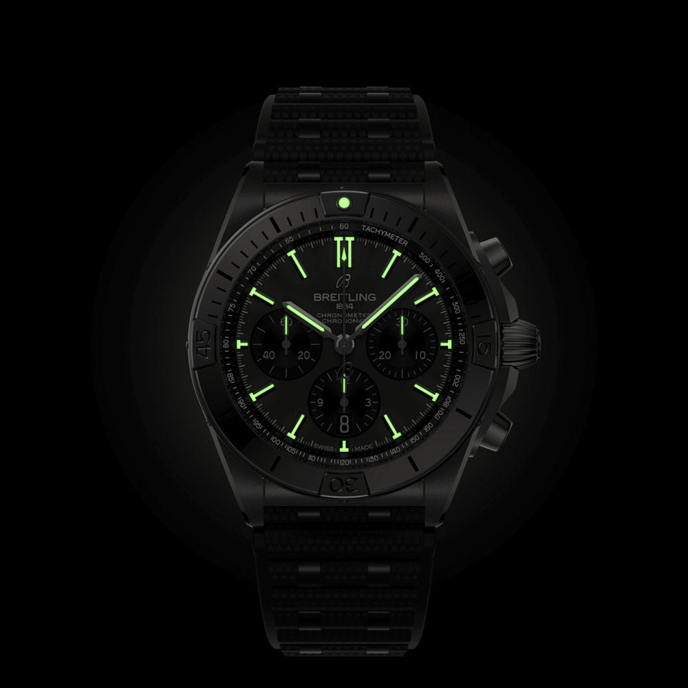 The Chronomat. equipped with the in-house Breitling Manufacture Calibre 01. is available in stainless steel. 18 k red gold. and titanium. With a 42 mm case and distinctive bezel featuring four rider tabs at the 15-minute marks. this timepiece also offers a variety of colorful dial options. Completing the look is the signature Rouleaux bracelet. available in both metal and rubber. As true to the original. the Chronomat is a COSC-certified chronometer.