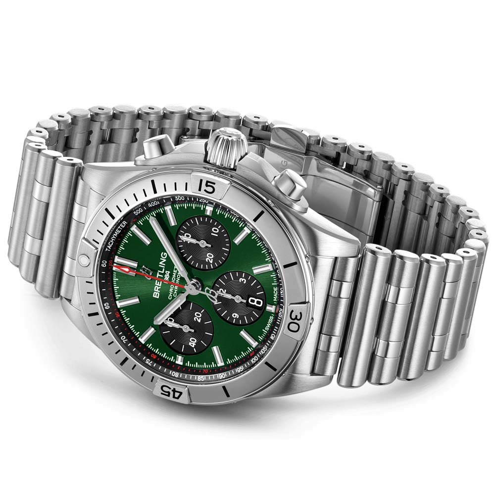 • Breitling Chronomat B01 42mm Green Dial Automatic Chronograph Gents Watch AB0134101L1A1
