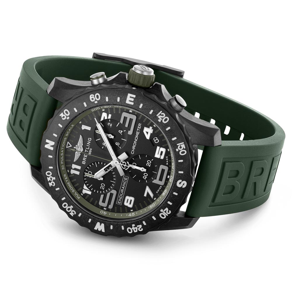 The Breitling Endurance Pro is a lightweight watch for athletes and a stylish everyday chronograph. It mixes precision technology with a vivid design. making it perfect for a professional lifestyle and active pursuits. Crafted from Breitlight®. a 3.3x lighter material than titanium and 5.8x lighter than steel. the Endurance Pro is non-magnetic. hypoallergenic and scratch-resistant. Featuring a warm touch and textured effect. it's exclusively Swiss-made and comes paired with vibrant dials and rubber/ECONYL® straps. The COSC-certified Calibre 82 SuperQuartz�?powers the masterpiece. providing superior accuracy.