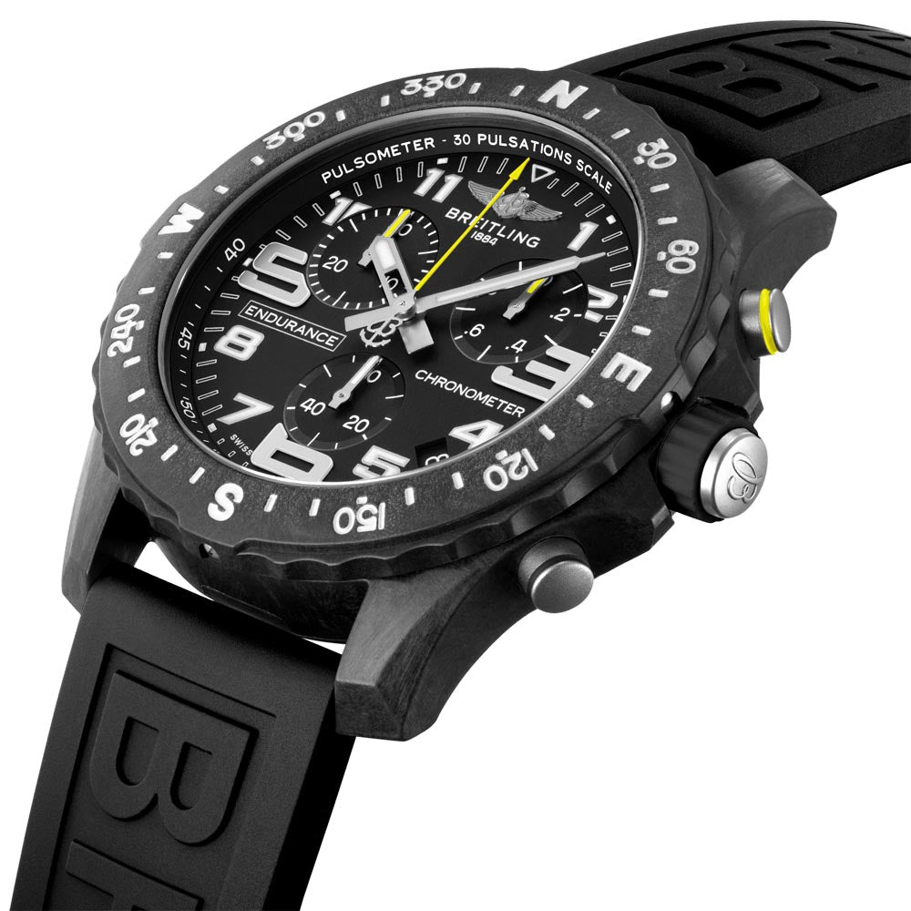 Crafted in Switzerland. the Endurance Pro offers a selection of vibrant dials and rubber straps featuring a Breitlight® double tang-type buckle. Furthermore. users may also opt to equip their device with the Outerknown ECONYL® yarn single-piece strap -- exclusive to Breitling. Moreover. the Endurance Pro is powered by the COSC-certified SuperQuartz�?chronograph movement. Calibre 82. that provides unwavering accuracy.