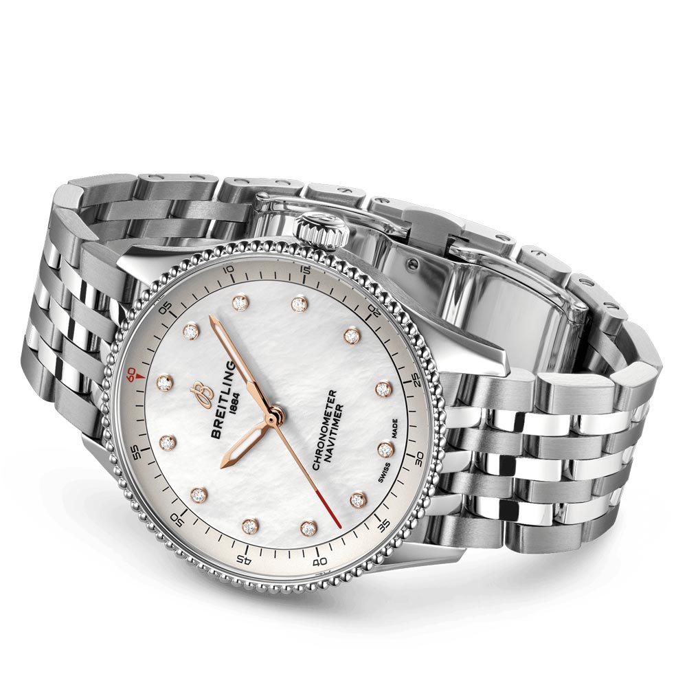 The Navitimer is one of the most celebrated watches ever. having been treasured on journeys since 1952. Breitling now offers two sizes: 36mm for the traditional look or the 32mm with a simpler dial design. Both are bejewelled with pops of pastel. MOP and traceable precious materials. all seamlessly blending together to create a sophisticated and versatile timepiece. sure to accompany you on any journey.