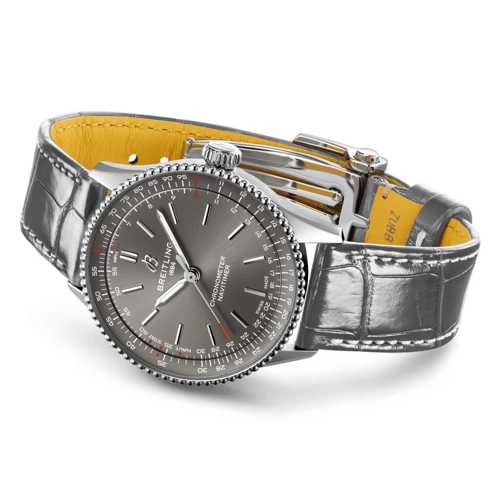 The Breitling Navitimer is a renowned watch. renowned by collectors and sought after for its timeless design. This classic symbol of adventure is now available in 36 and 32mm sizes. making it suitable for any wrist. The 36mm version features the familiar beaded bezel and functioning slide rule. whilst the 32mm size is a simplified design ready to grace any look. Luxurious materials and pastel accents combine to create a jewellery feel. and together with refinements to the design. the Navitimer looks as ready for an excursion as ever.