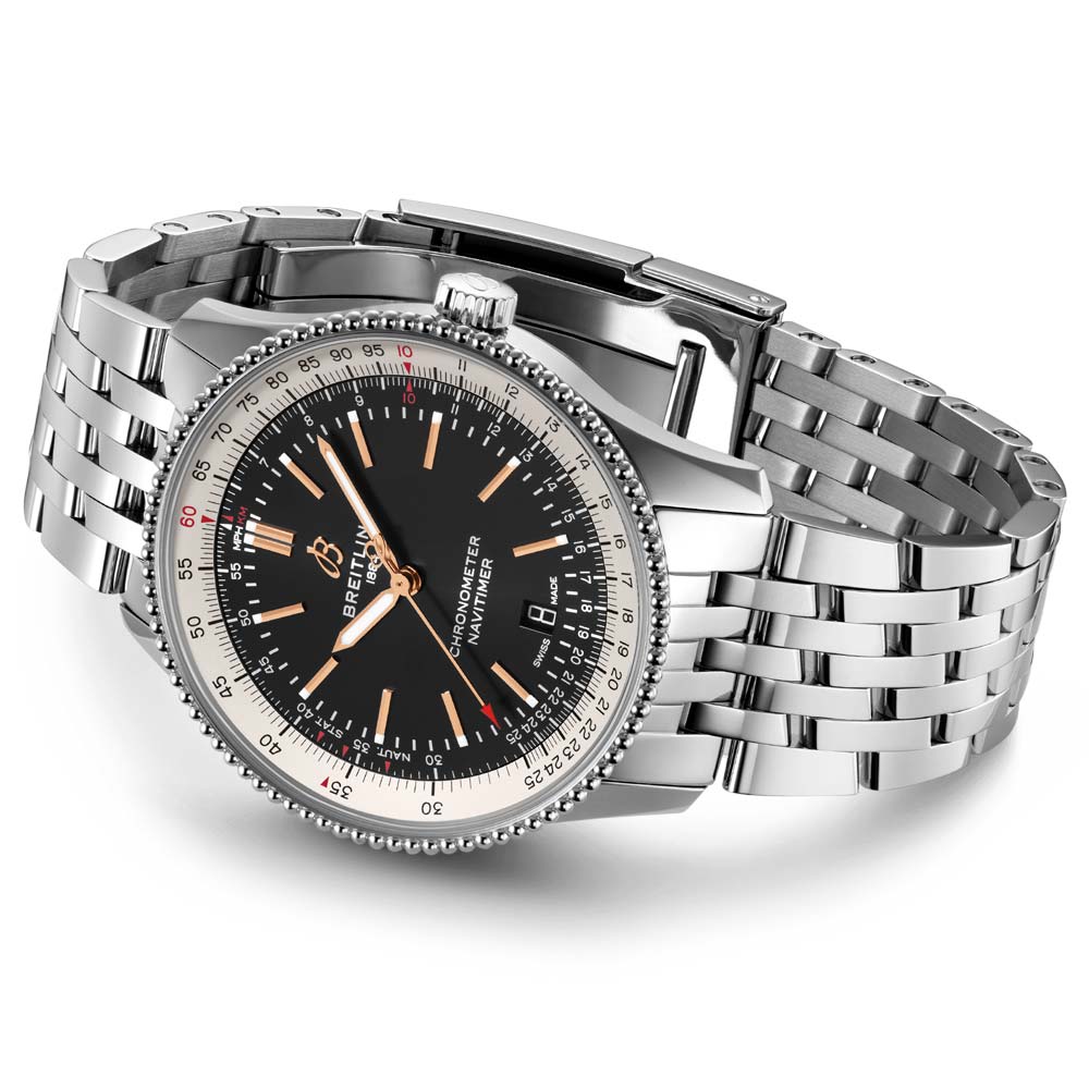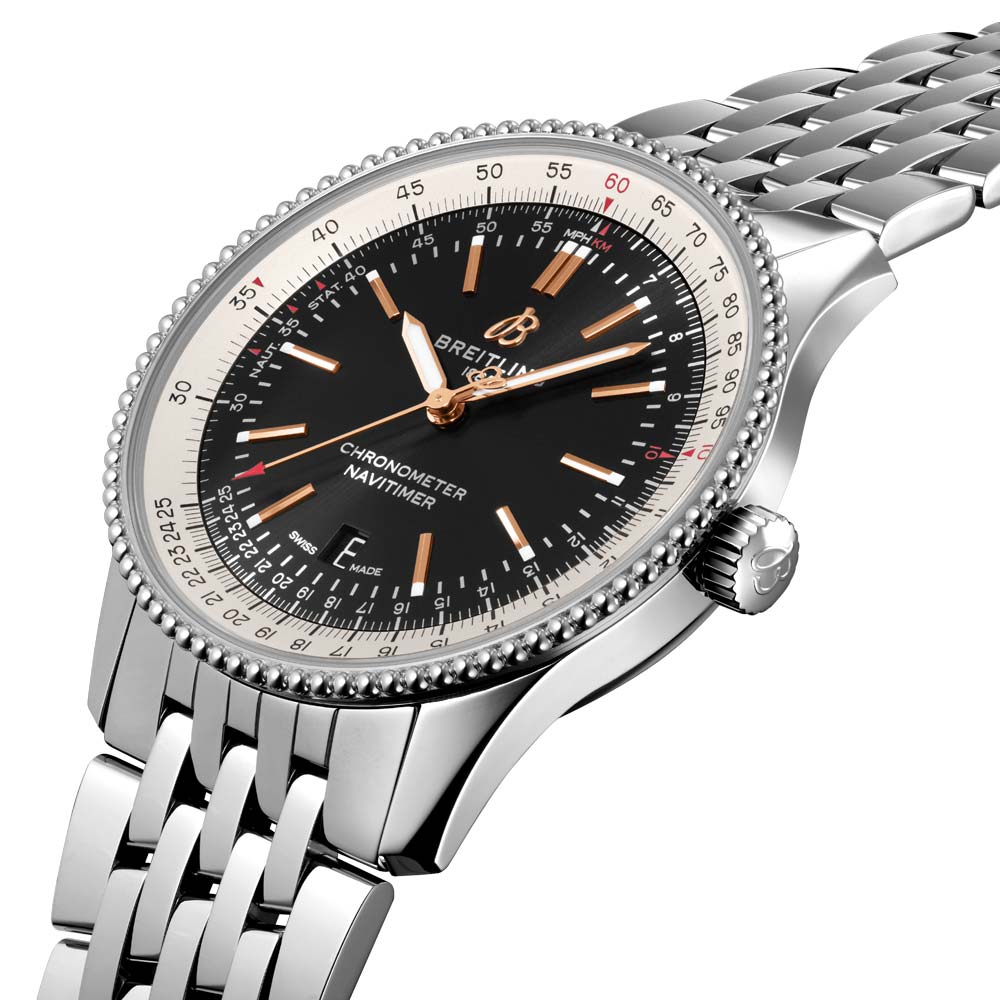 This sophisticated watch offers a timeless style crafted from stainless steel or 18ct red gold. The 41mm case features a beaded bezel and a selection of classy dials. It comes with either a matching bracelet or an alligator strap with a stainless-steel pin or folding buckle. The reliable and COSC-certified Breitling Calibre 17 chronometer provides its power.