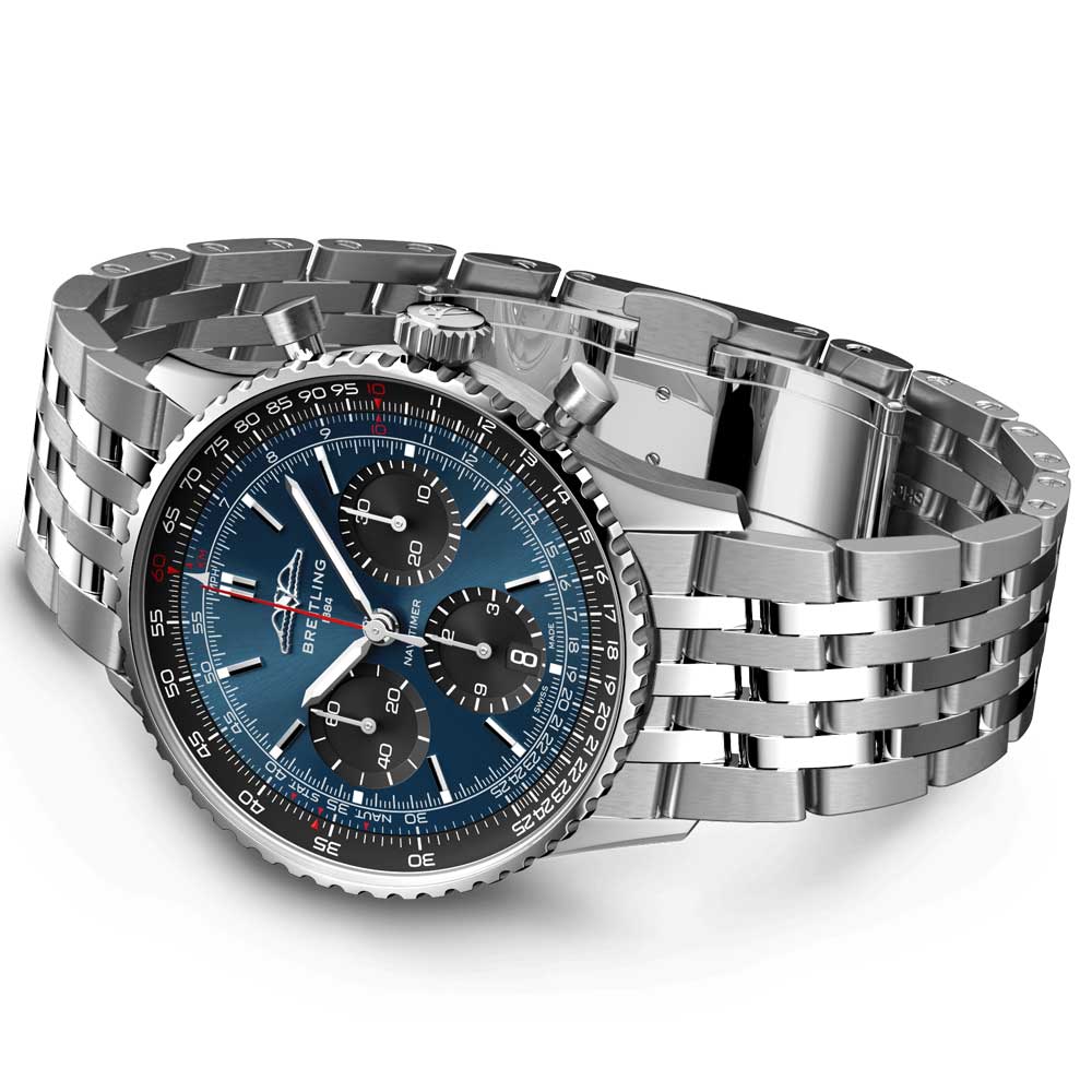 In 1952. Breitling revolutionized aviation watches with the Navitimer. a chronograph featuring a slide rule allowing for flight calculations. The unique design earned it official recognition from the AOPA. the world's largest pilots' association. Iconic aviators. celebrities and astronauts embraced the timepiece. and the modern version now features a flattening slide rule. brushed/polished metal elements. and varied blue. green and copper dials. At 12 o'clock. the AOPA wings evoke beloved memories. solidifying the Navitimer as a 70-year favorite of pilots and trendsetters.