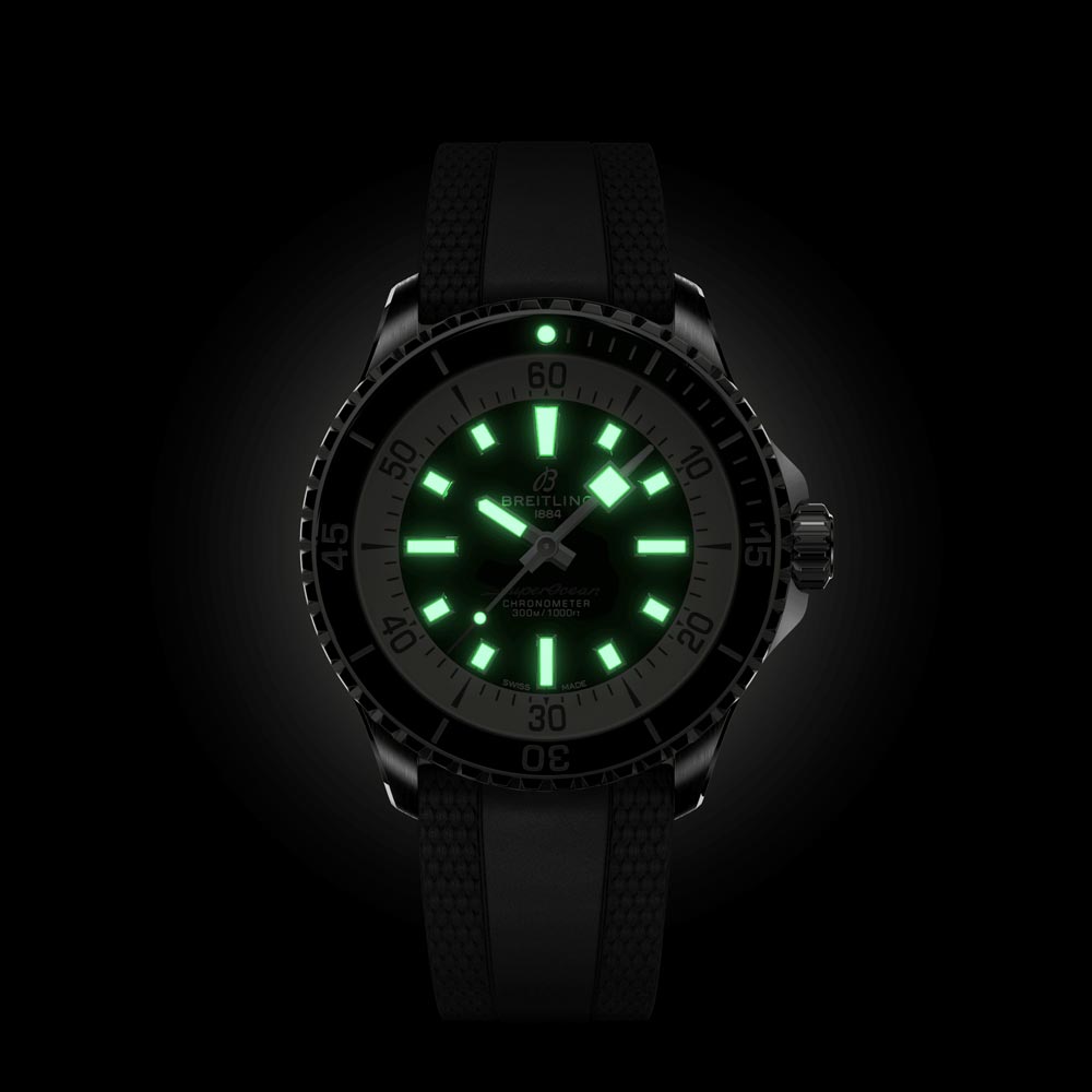 Breitling Superocean 42mm watch is designed to handle all your aquatic interests with performance and style. Taking inspiration from the legendary 1960s Slow Motion watch. the Superocean features simple. legible design with luminescent indexes. squared-off hands. and a high-contrast dial ring. It also offers modern touches such as a ceramic-inlayed bezel and bright dials. Broad hands and luminescent Super-LumiNova® indexes enable effortless readability underwater. Shock. sand. and saltwater-resistant. it's water resistant to 300 m (1000 ft).