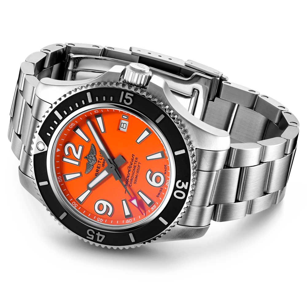The Breitling Superocean Automatic 42 offers a combination of sporty style and reliable performance. Its 42mm stainless-steel case can withstand depths of 500 meters (50 bar). and its colorful dials paired with a matching rubber strap and pin buckle or folding clasp make it perfect for activities in and out of the water. This rugged and stylish timepiece is perfect for any challenge.Features:
