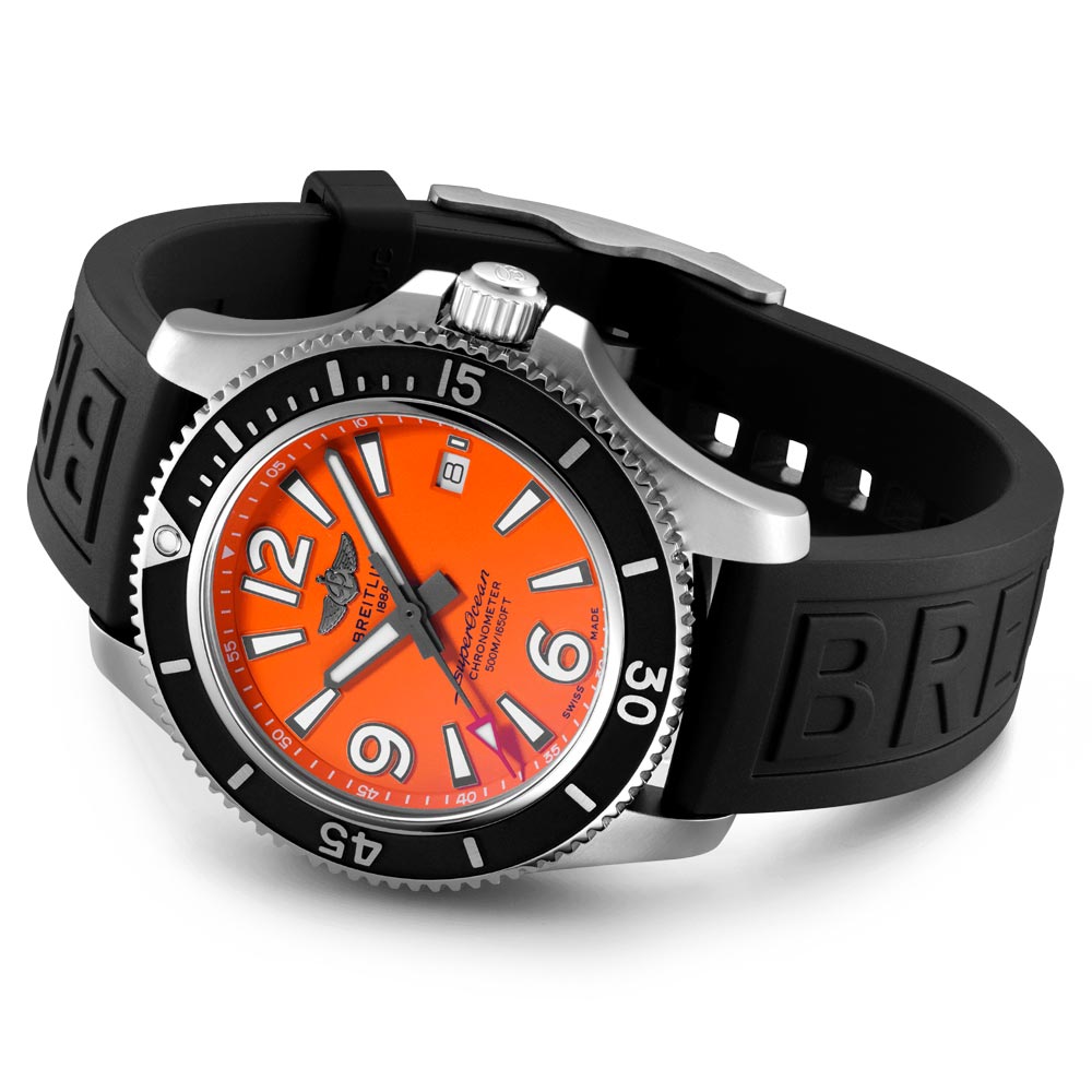 • Breitling Superocean 42mm Orange Dial Automatic Gents Watch A17366D71O1S2