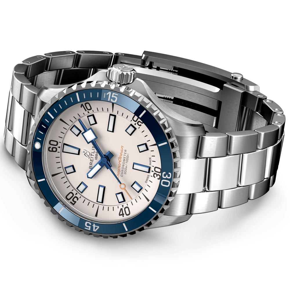 In the 1960s. scuba diving rose to prominence as a sport. and Breitling responded by introducing the Slow Motion watch. It was designed for maximum legibility with a clear-cut look featuring clean lines. luminescent indexes. squared-off hands. and a high-contrast dial ring. Perfect for all water-based activities. Breitling Superocean 42mm automatic watch offers premium performance and style.
