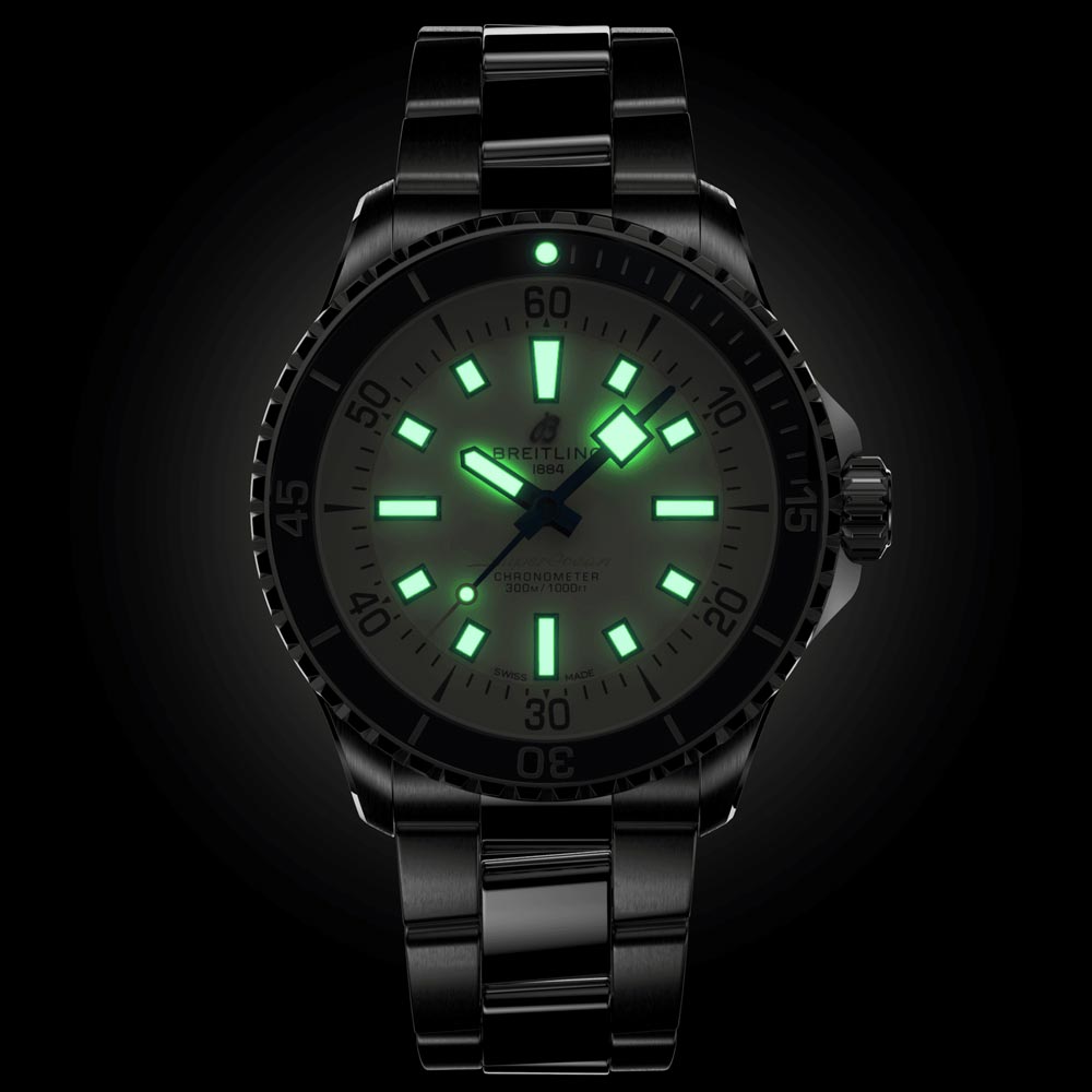 The practicality of the Superocean is undeniable. but its true appeal lies in its classic design. Referencing the classic Slow Motion. this model features contemporary elements such as a ceramic-inlayed bezel and vibrant dials. Additionally. the broad hands and indexes coated in Super-LumiNova® ensure optimal underwater readability. The watch is also certified for a water-resistance of up to 300 m (1000 ft) and can further withstand shocks. sand. and saltwater.
