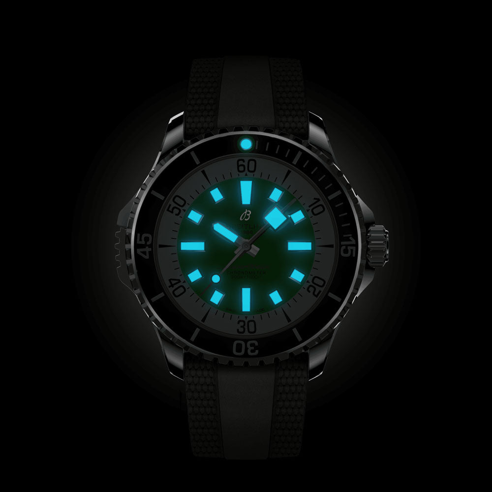 The new Superocean honours the iconic design elements of the Slow Motion. while incorporating contemporary elements such as a ceramic-inlaid bezel and vibrant colour dials. With broad hands and luminescent Super-LumiNova® indexes. readability is effortless even underwater. Additionally. the watch boasts a water resistance of 300 m (1000 ft) and is resilient against shocks. sand. and saltwater.
