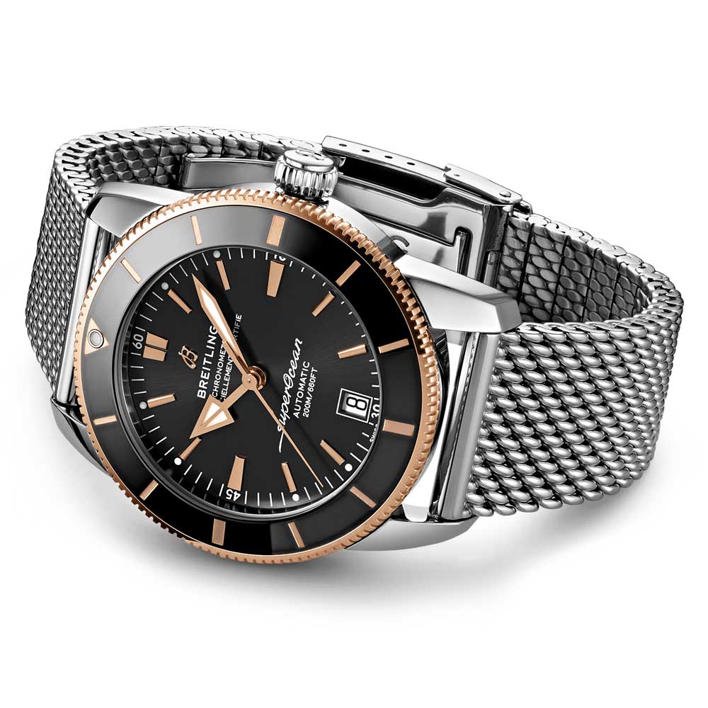 This modern take on the iconic 1957 Superocean Heritage B20 Automatic 42 is prepared for longevity. Its tough. scratch-resistant ceramic bezel and steel mesh bracelet can withstand depths of up to 200 meters (660ft). Boasting a certified chronometer automatic movement. this Breitling watch is built for tackling any endeavor.