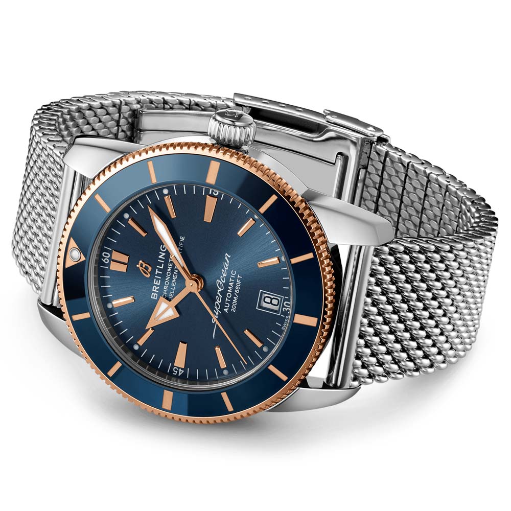 This classic dive watch. inspired by 1950s design. is the perfect combination of style and functionality. The Superocean Heritage B20 Automatic features a stainless steel or 18ct red gold shell. a unidirectional bezel. and a polished ceramic ring. The watch is available with either a black or blue dial and either a mesh bracelet or rubber strap. At its heart. the COSC-certified chronometer Breitling Manufacture Calibre B20 - based on the Tudor Calibre MT5612 - powers the watch.