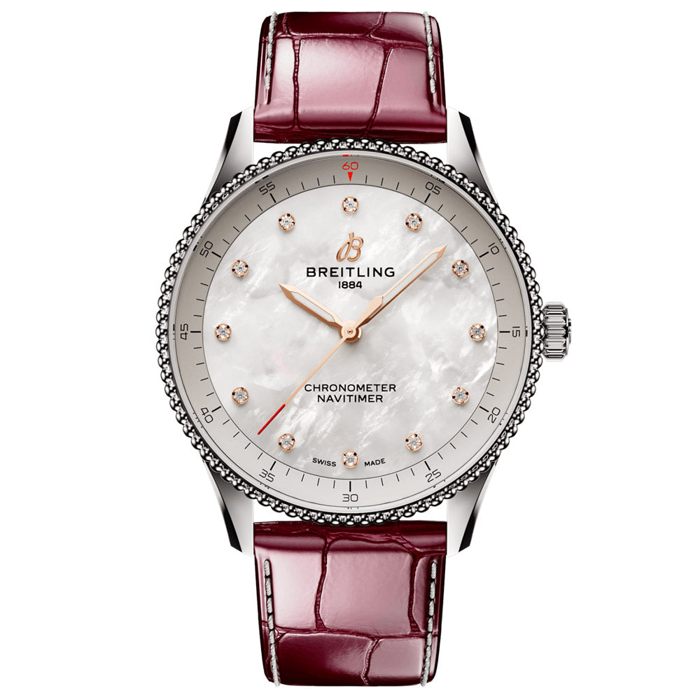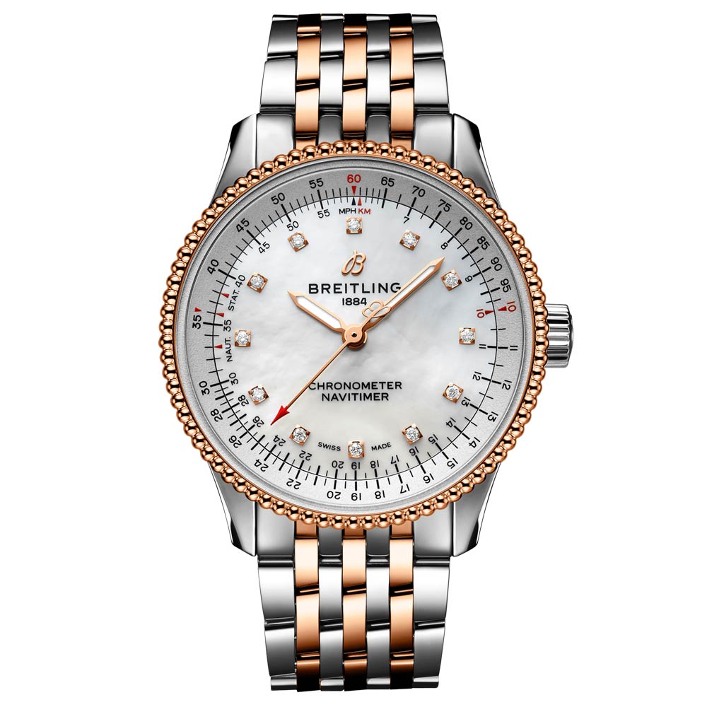 Breitling Navitimer 35mm MOP Dial 18ct Red Gold Steel Diamond Automatic Ladies Watch U17395211A1U1