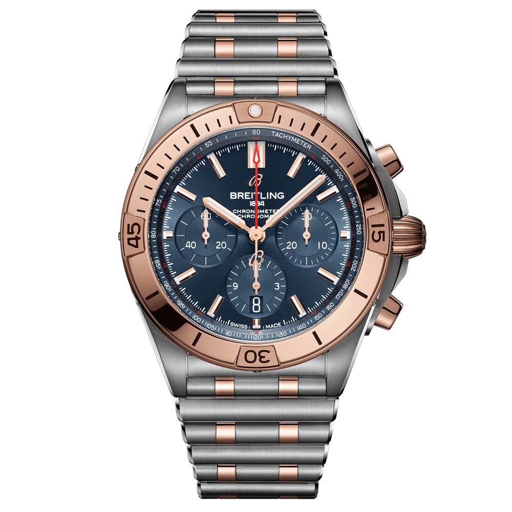 Breitling Chronomat B01 42mm Blue Dial Steel 18ct Rose Gold Automatic Chronograph Gents Watch UB0134101C1U1