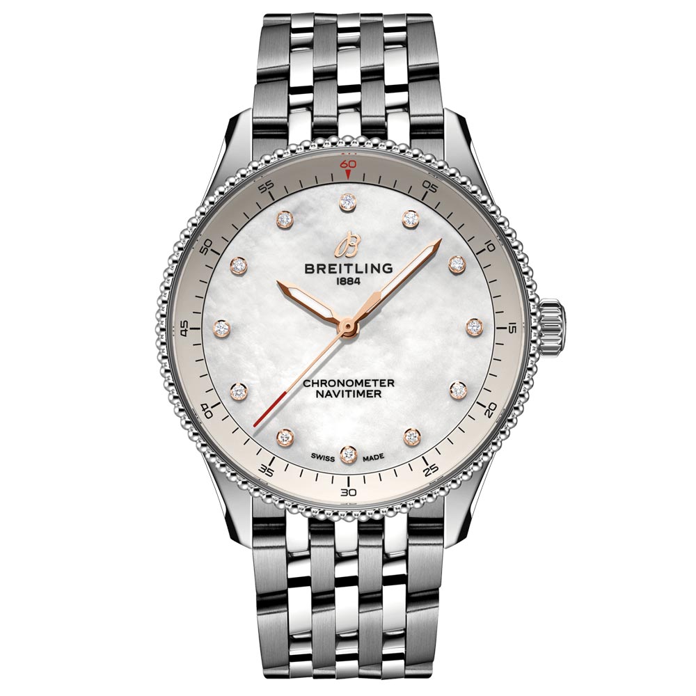Breitling Navitimer 32mm MOP Diamond Dot Dial Quartz Ladies Watch A77320E61A2P2