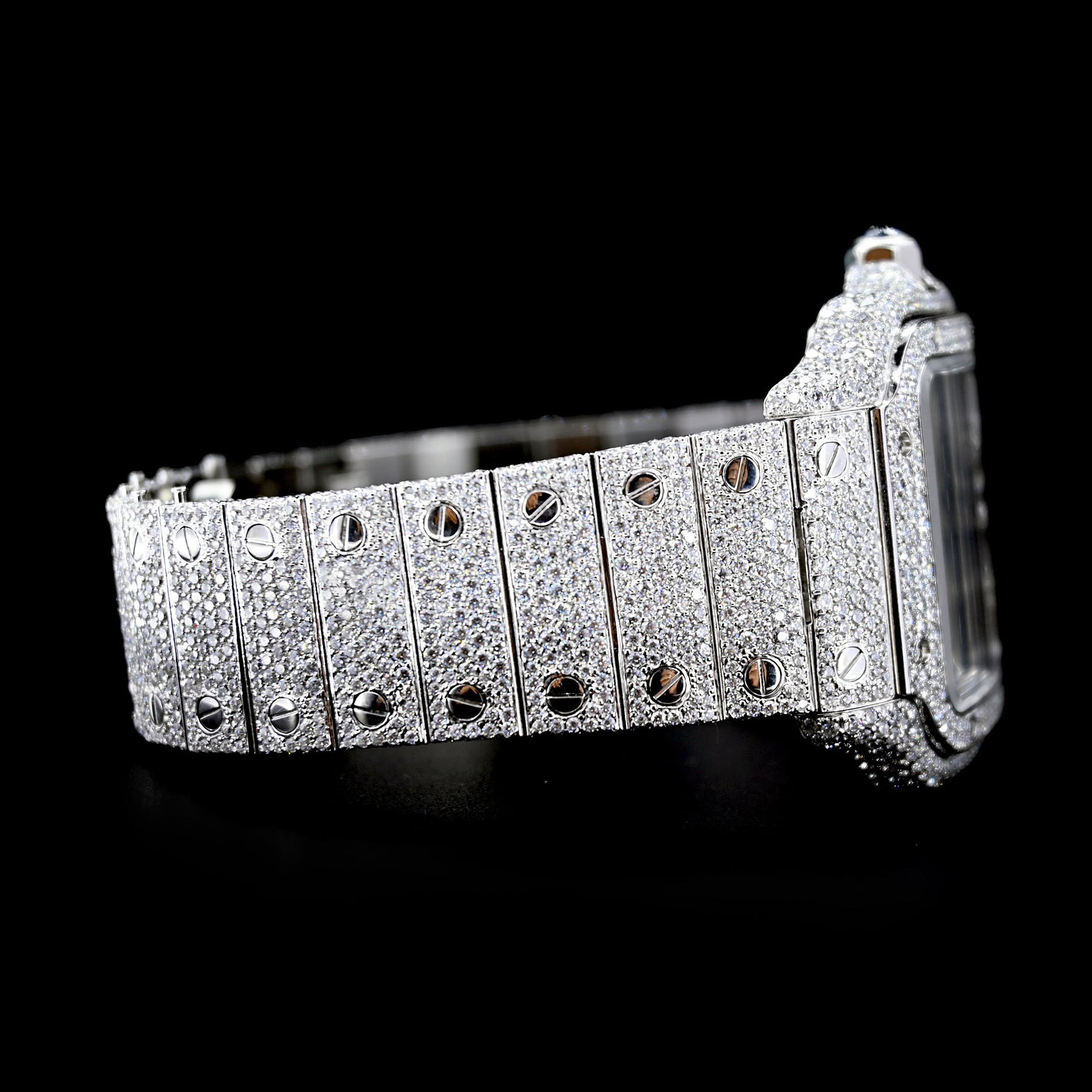 • Cartier Santos De Cartier Skeleton Hand Wound Movement Custom Pave Diamond ICED OUT 02