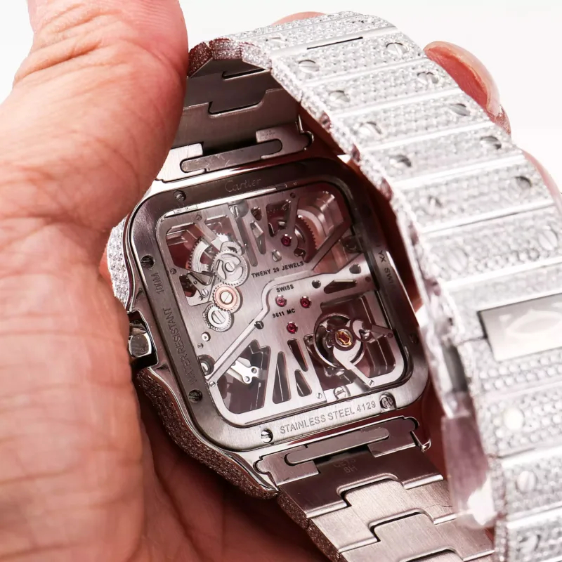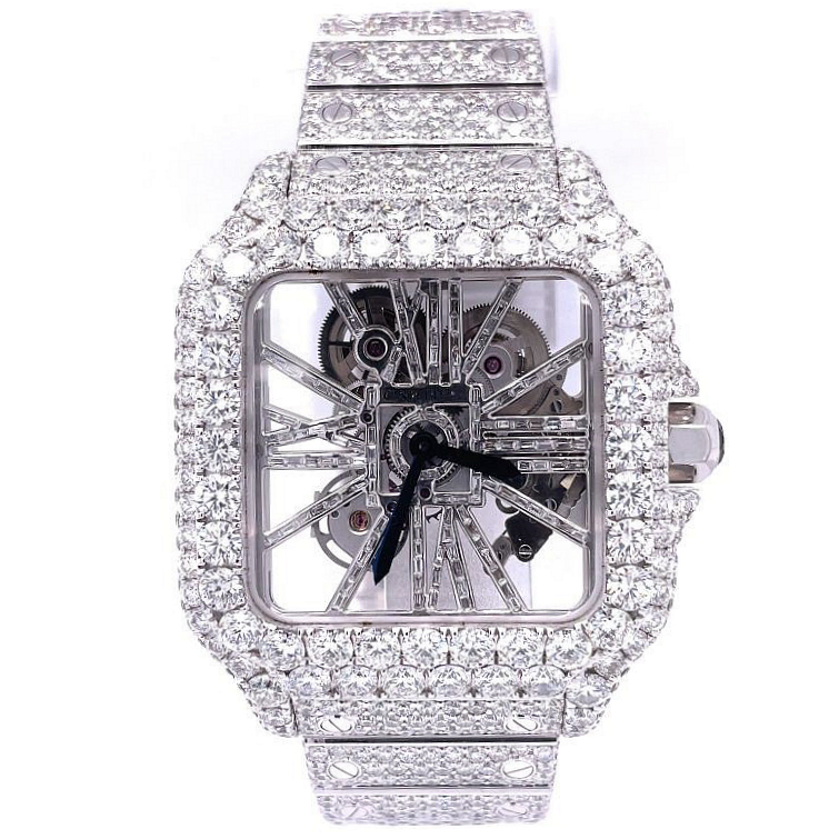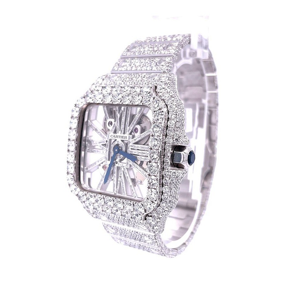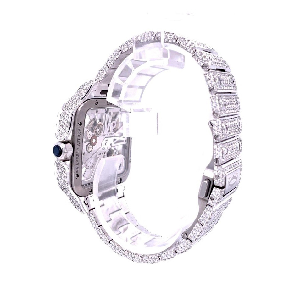 Cartier Santos De Cartier Skeleton Hand Wound Movement Custom Pave Diamond ICED OUT