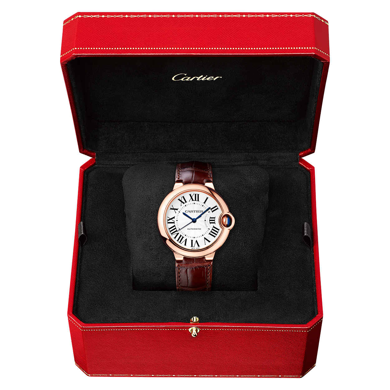 Cartier Ballon Bleu 18ct Rose Gold 36mm Automatic Leather Strap Watch
