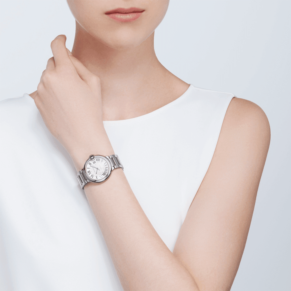 Cartier Ballon Bleu de Cartier Watch 33mm Silver Dial Stainless Steel Bracelet. WSBB0048.