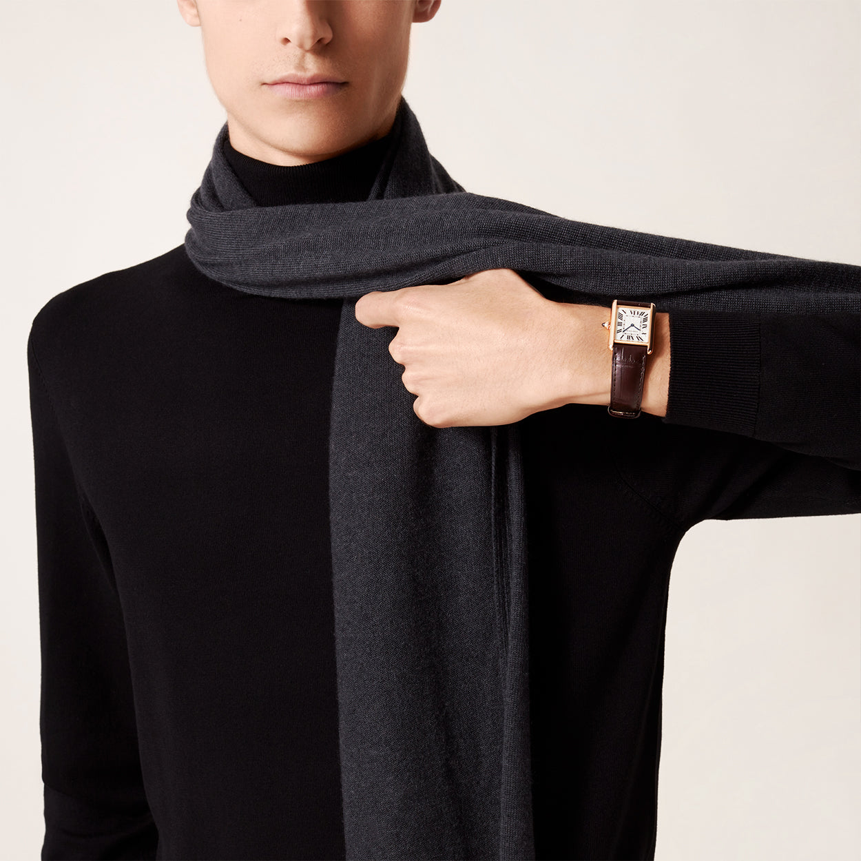• Tank Louis Cartier 18ct Rose Gold Large Model Leather Strap Watch