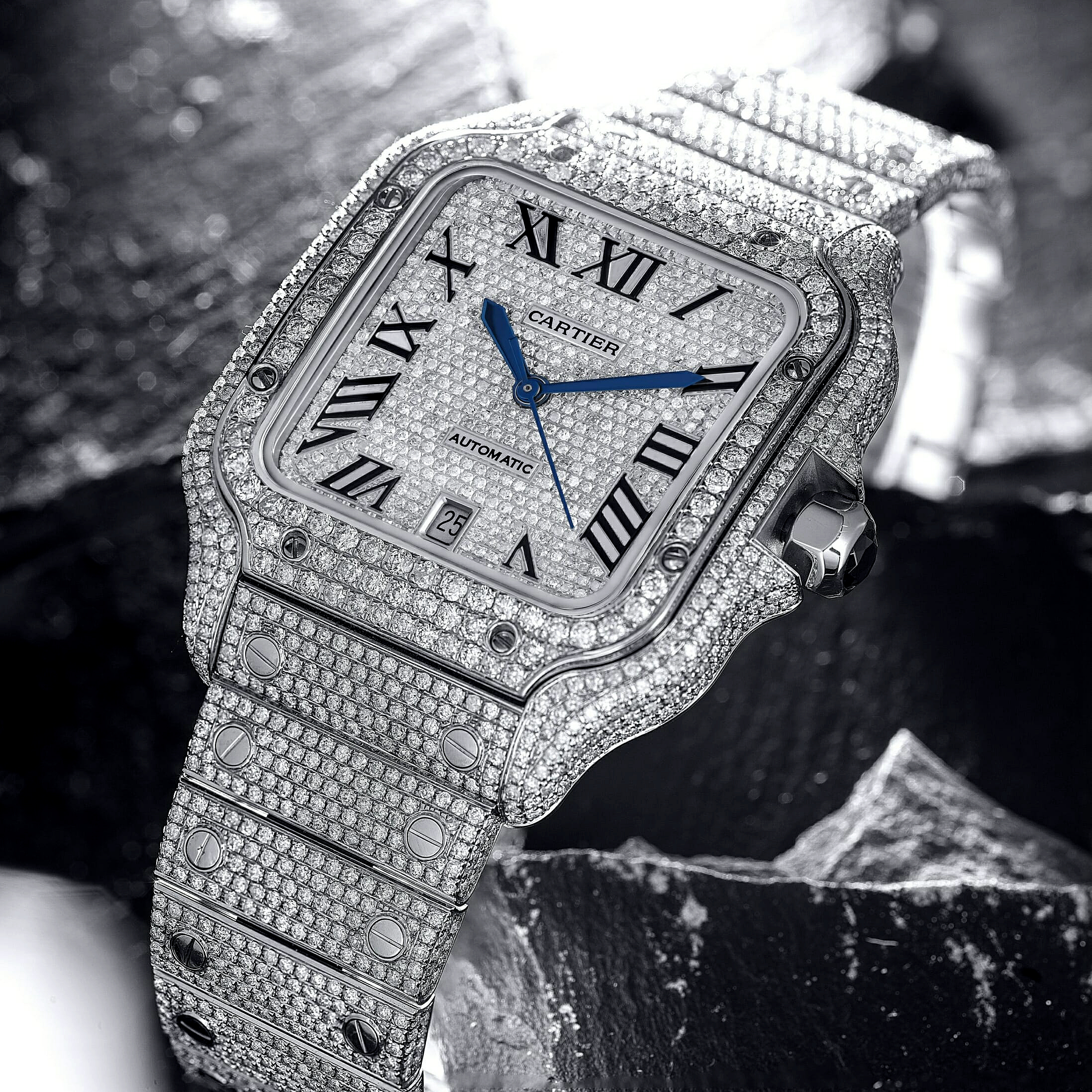 Cartier Santos De Cartier W2SA0006 Iced Out Watch